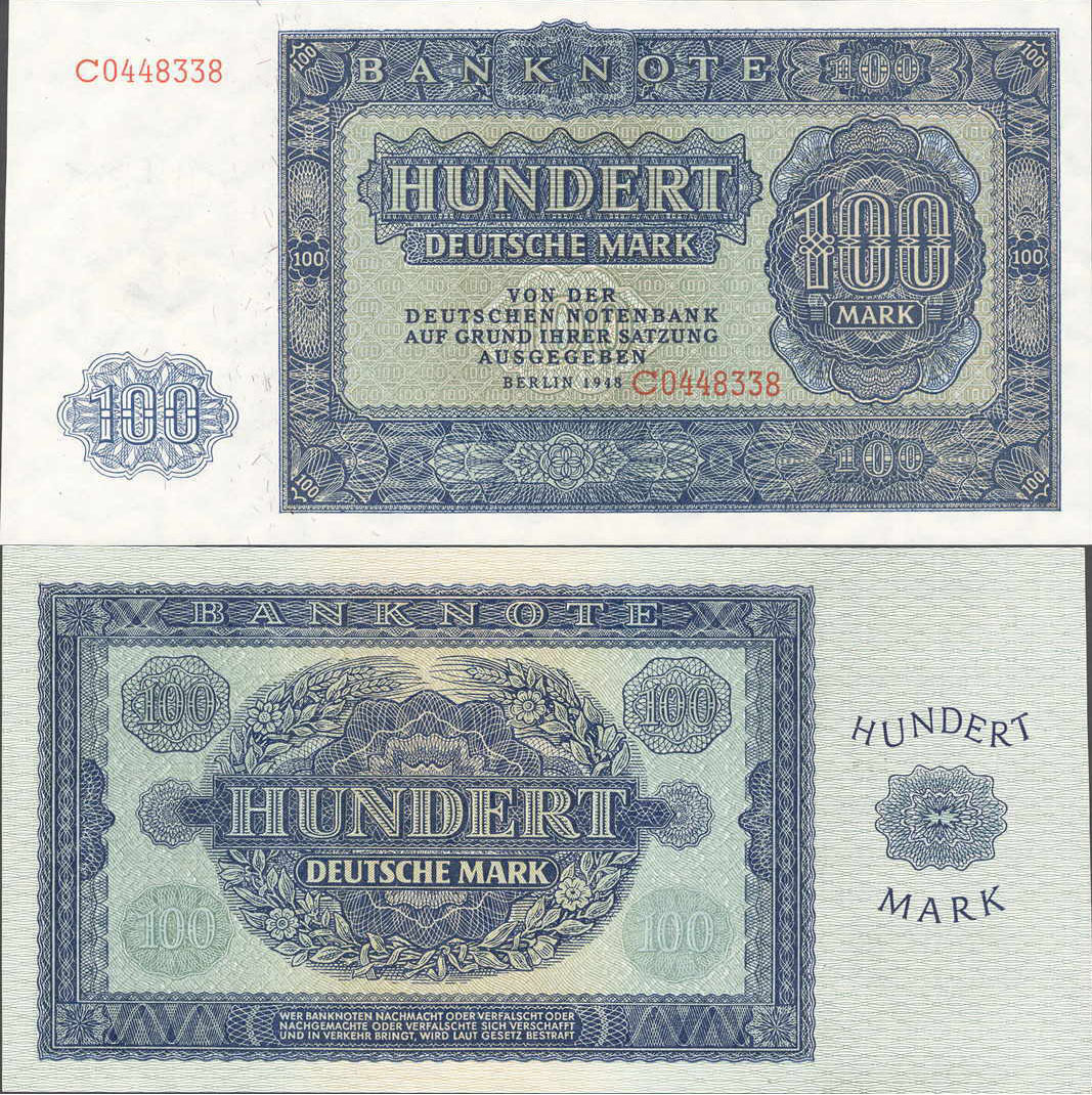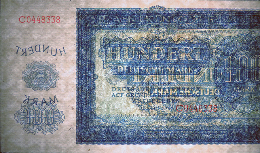 100 Deutsche Mark; Grabowski SBZ-17 (346/P15); Vs. und Rs. Ornamente; Wz.: Pfeilspitzen; KN 7-stellig rot |