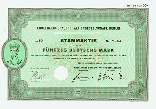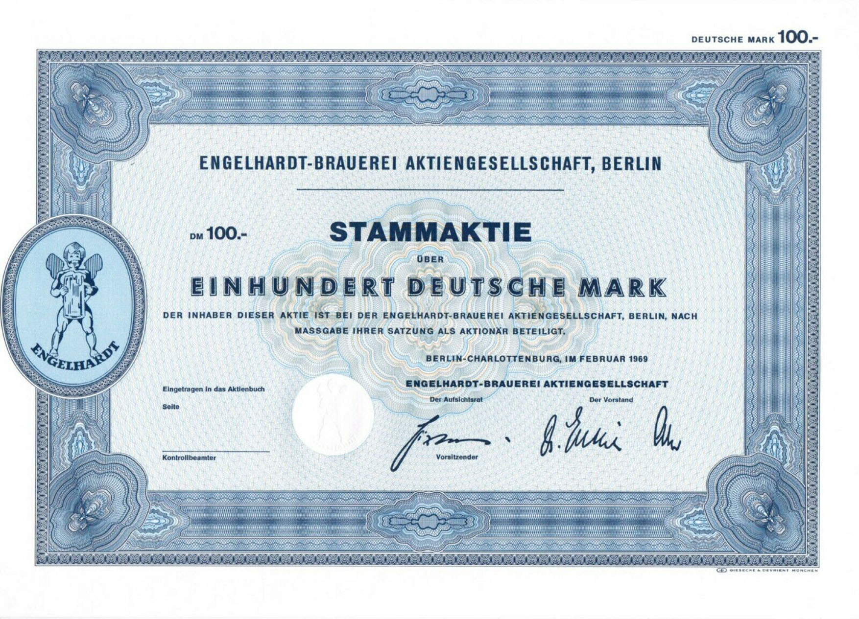 100 DM; Stammaktie; ausgestellt in Berlin-Charlottenburg, im Februar 1969; nicht katalogisiert; Wasserzeichen: ; blanco |