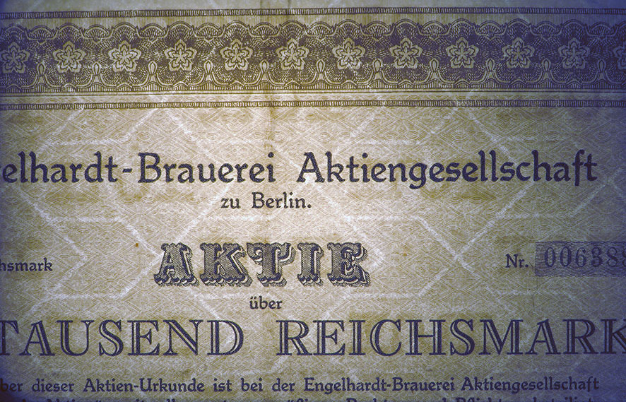 1.000 RM; ausgestellt in Berlin-Pankow, im Februar 1918; nicht katalogisiert; Wasserzeichen: ; lochentwertet; Auflage: 650 Stück, nur 7 Stück bekannt |
