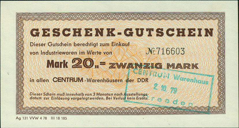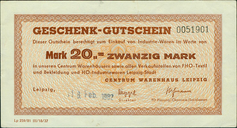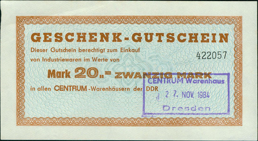 20 Mark; o. J.; nicht katalogisiert; Vs.: ohne Druckvermerk; Rs.: leer; KN 6-stellig |