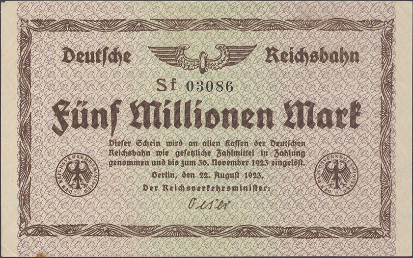 5 Millionen Mark; 22. August 1923; Grabowski RVM-3.d (002.5-8/S1013.d); Rs.: leer; Wz.: Wellenbündel |