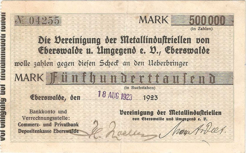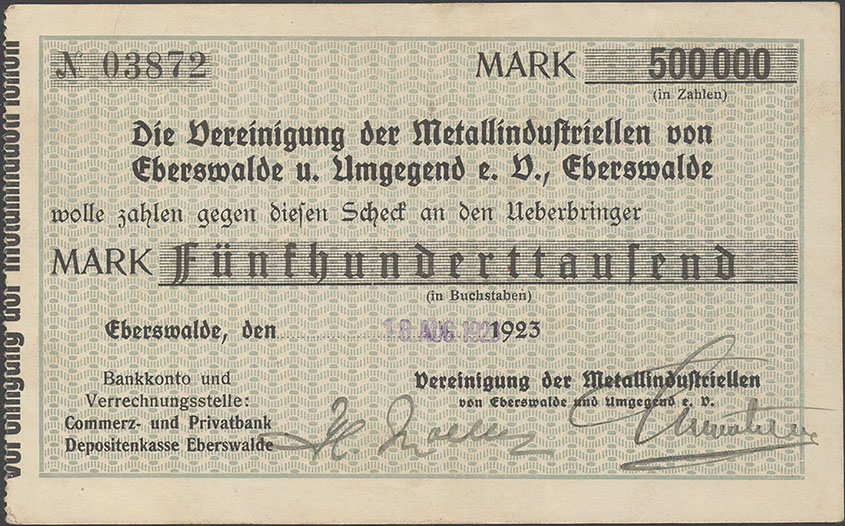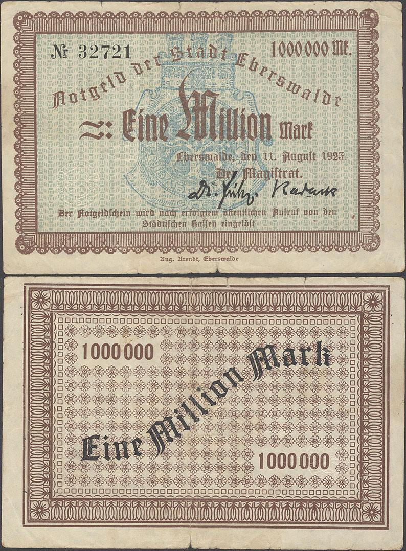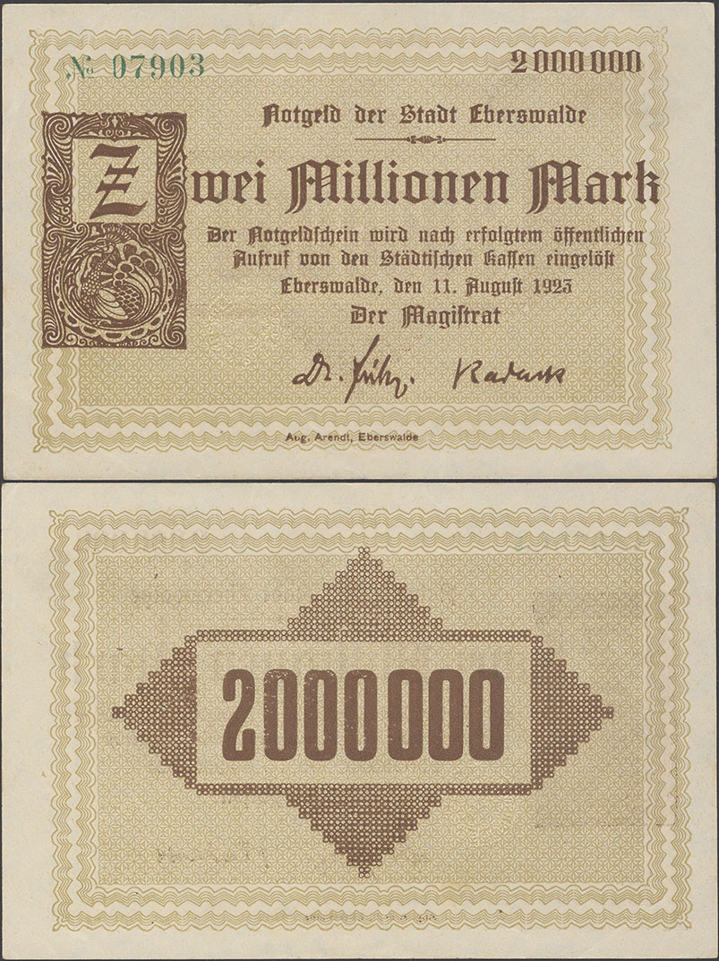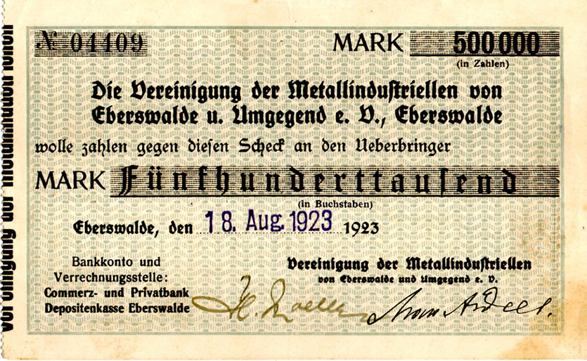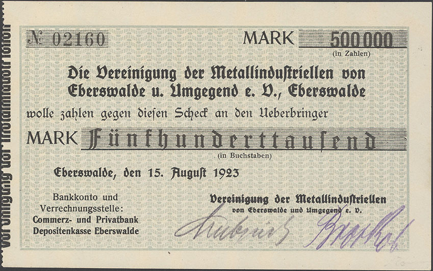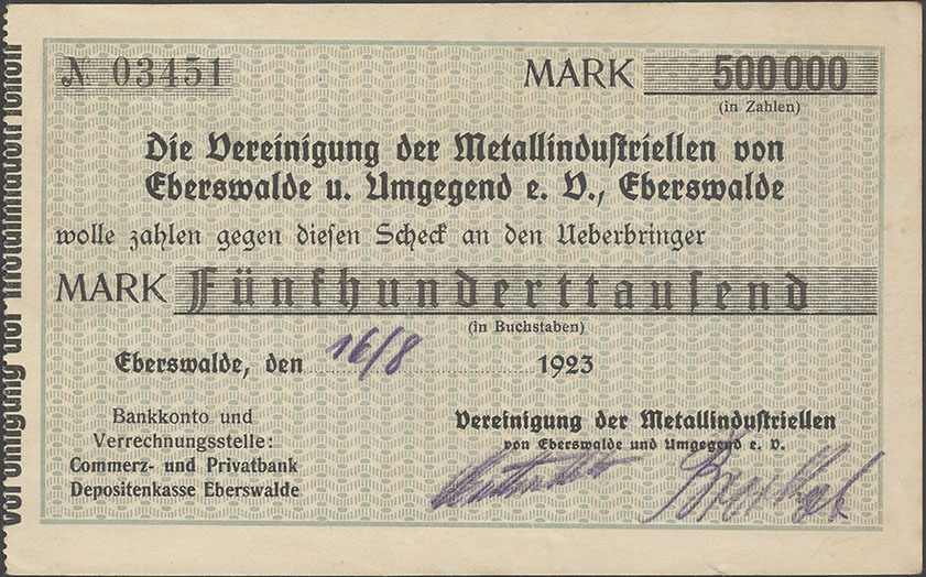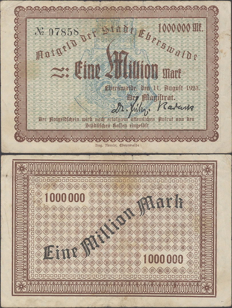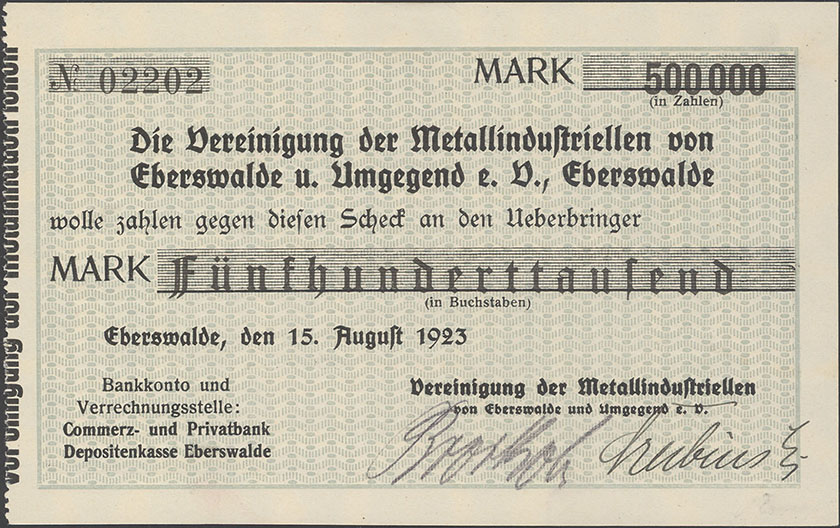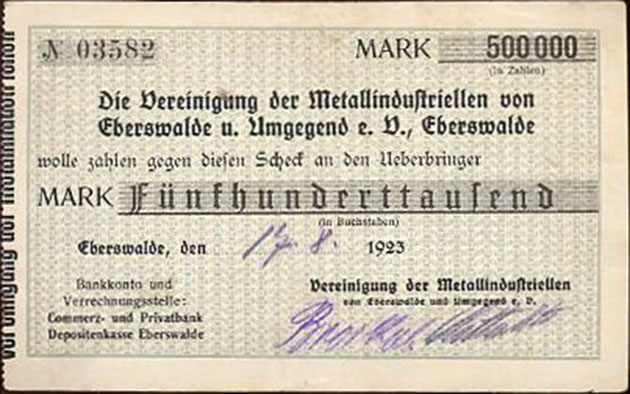 500.000 Mark | 1 Million Mark | 2 Millionen Mark | 5 Millionen Mark | 10 Milliarden Mark | 20 Milliarden Mark |