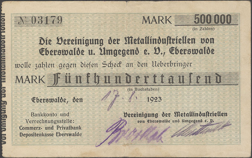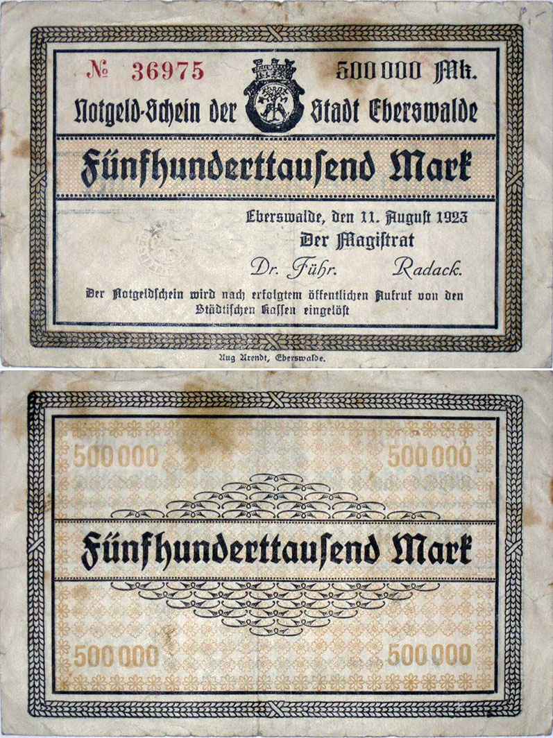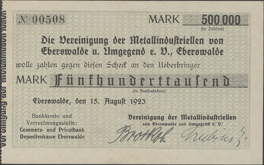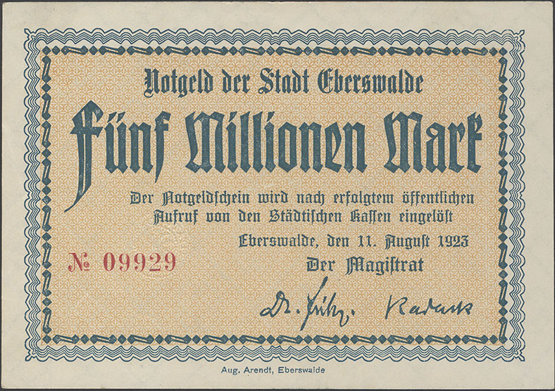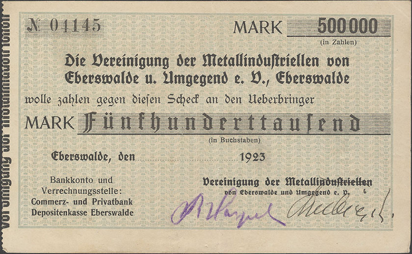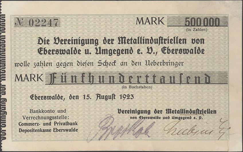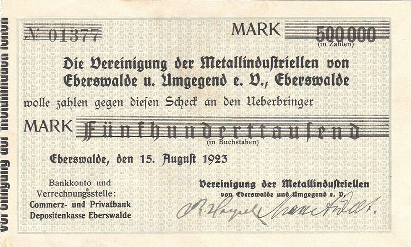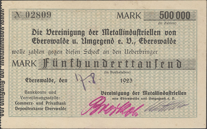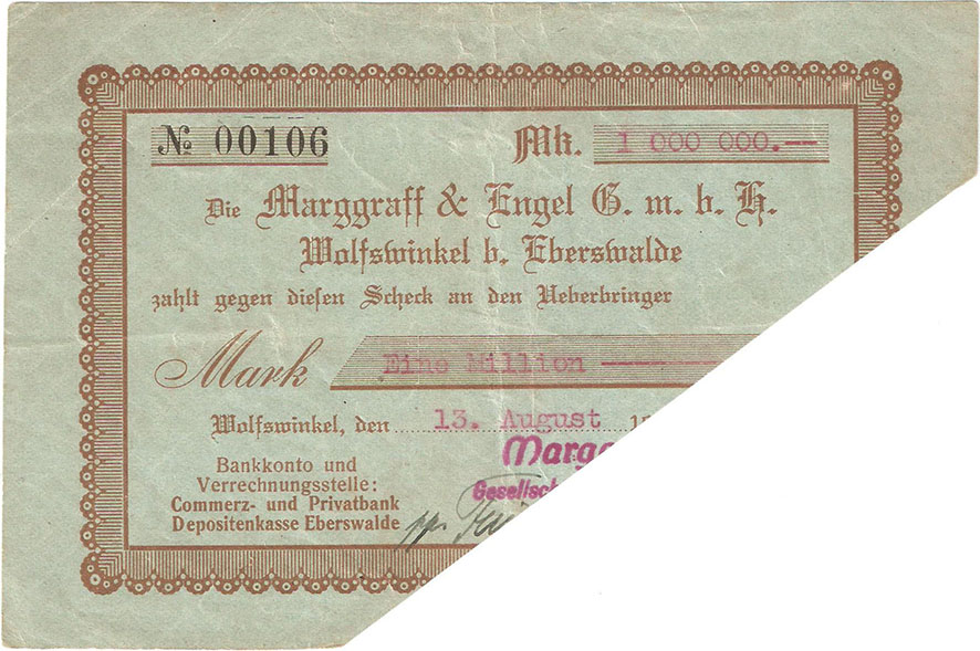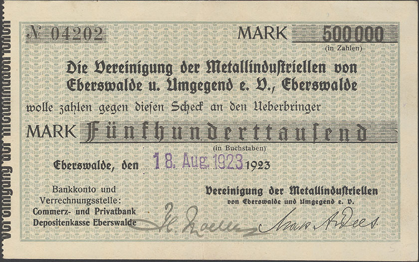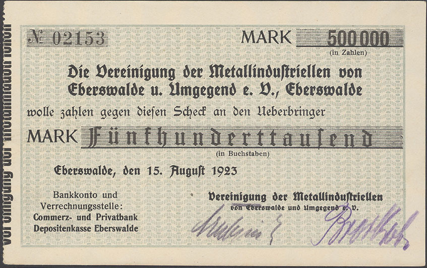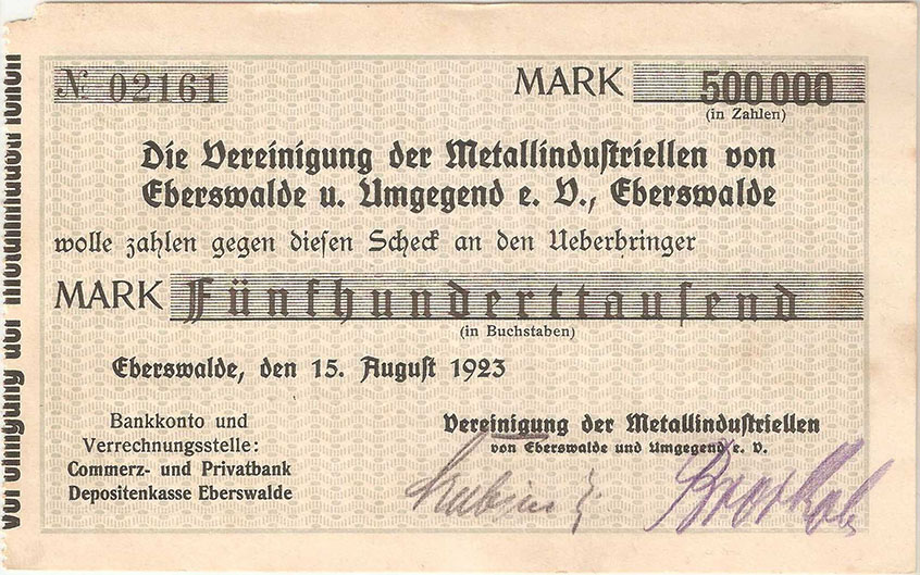 500.000 Mark | 1 Million Mark | 2 Millionen Mark | 5 Millionen Mark | 10 Milliarden Mark | 20 Milliarden Mark |