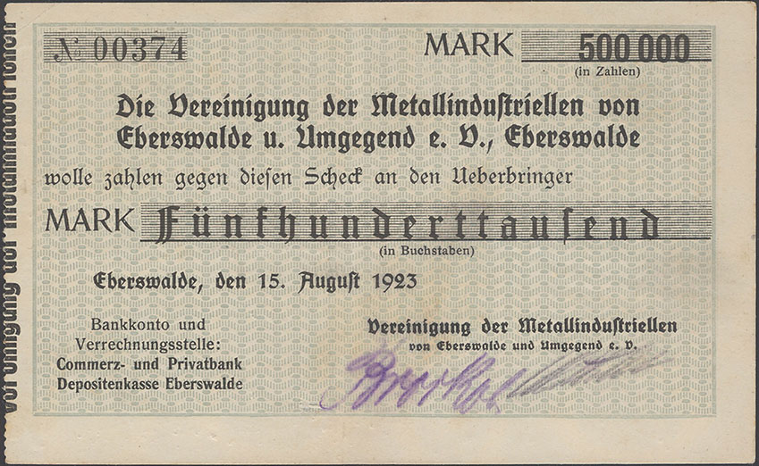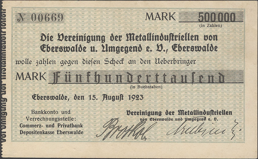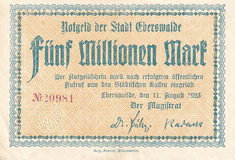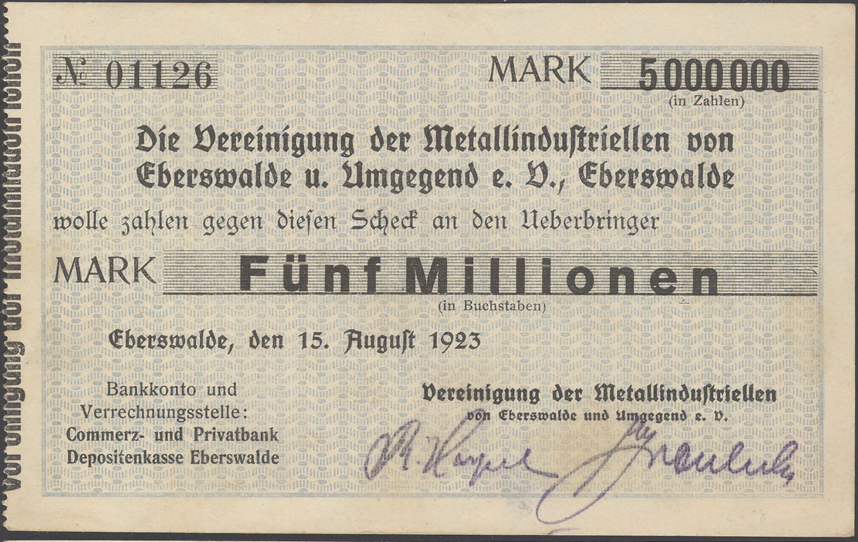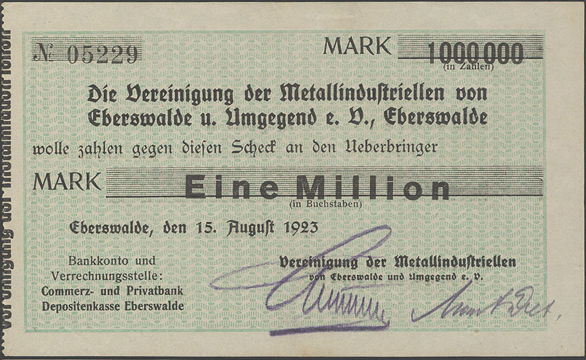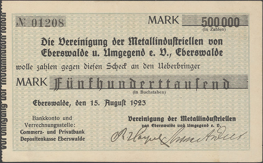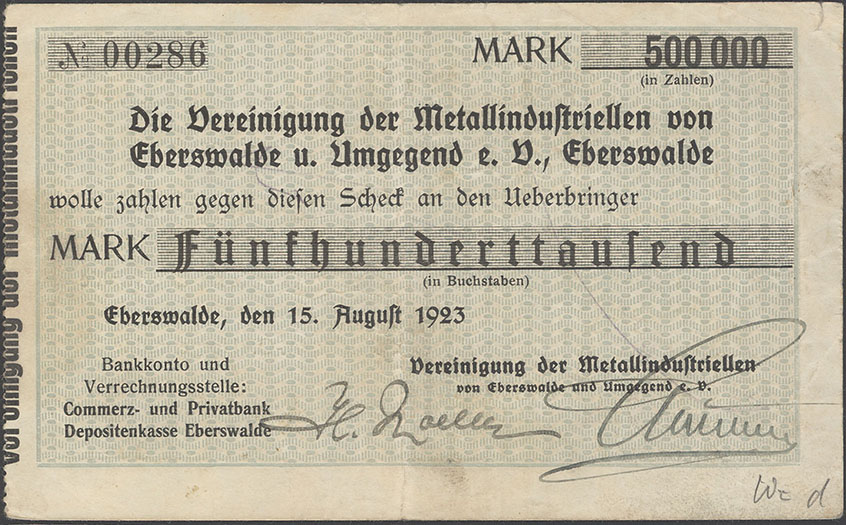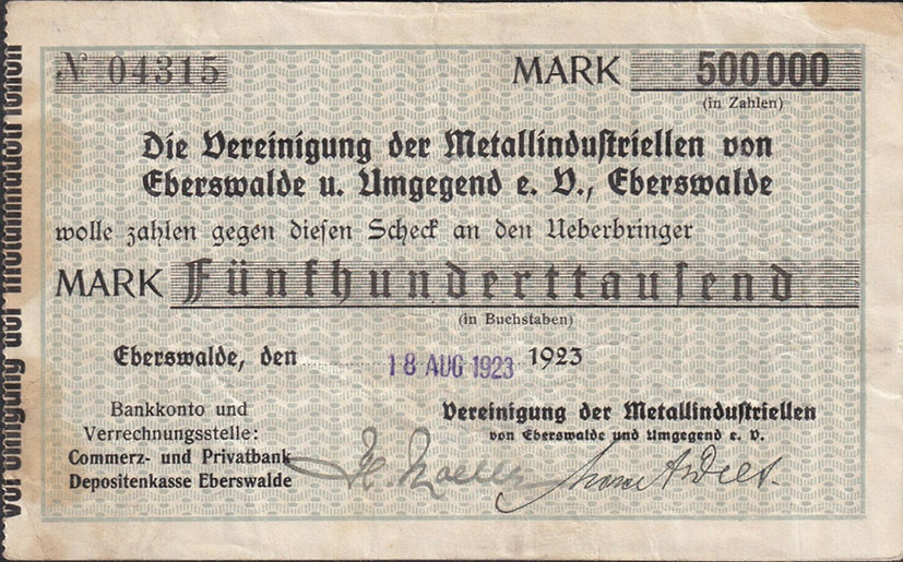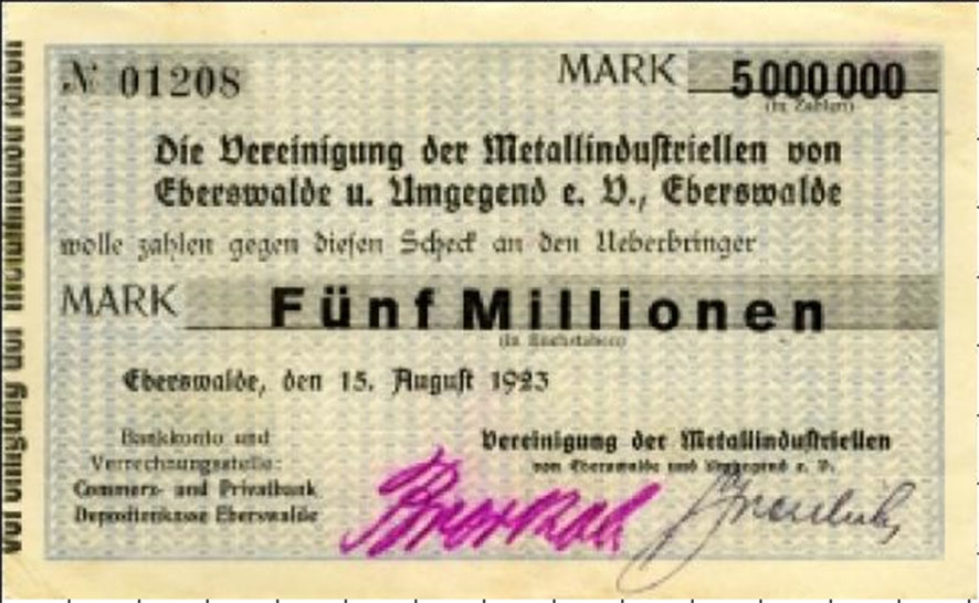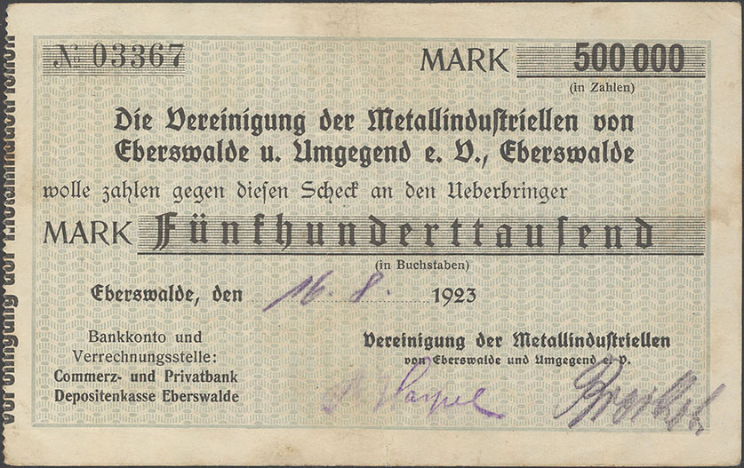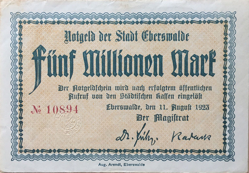 500.000 Mark | 1 Million Mark | 2 Millionen Mark | 5 Millionen Mark | 10 Milliarden Mark | 20 Milliarden Mark |