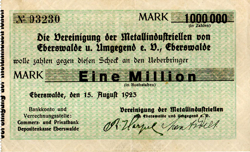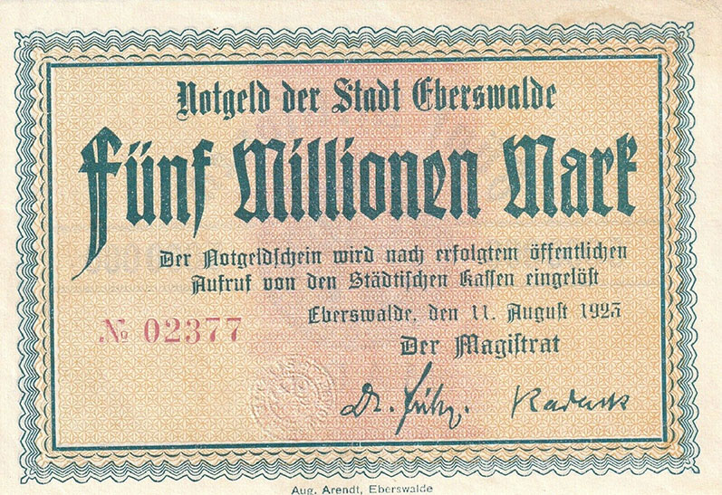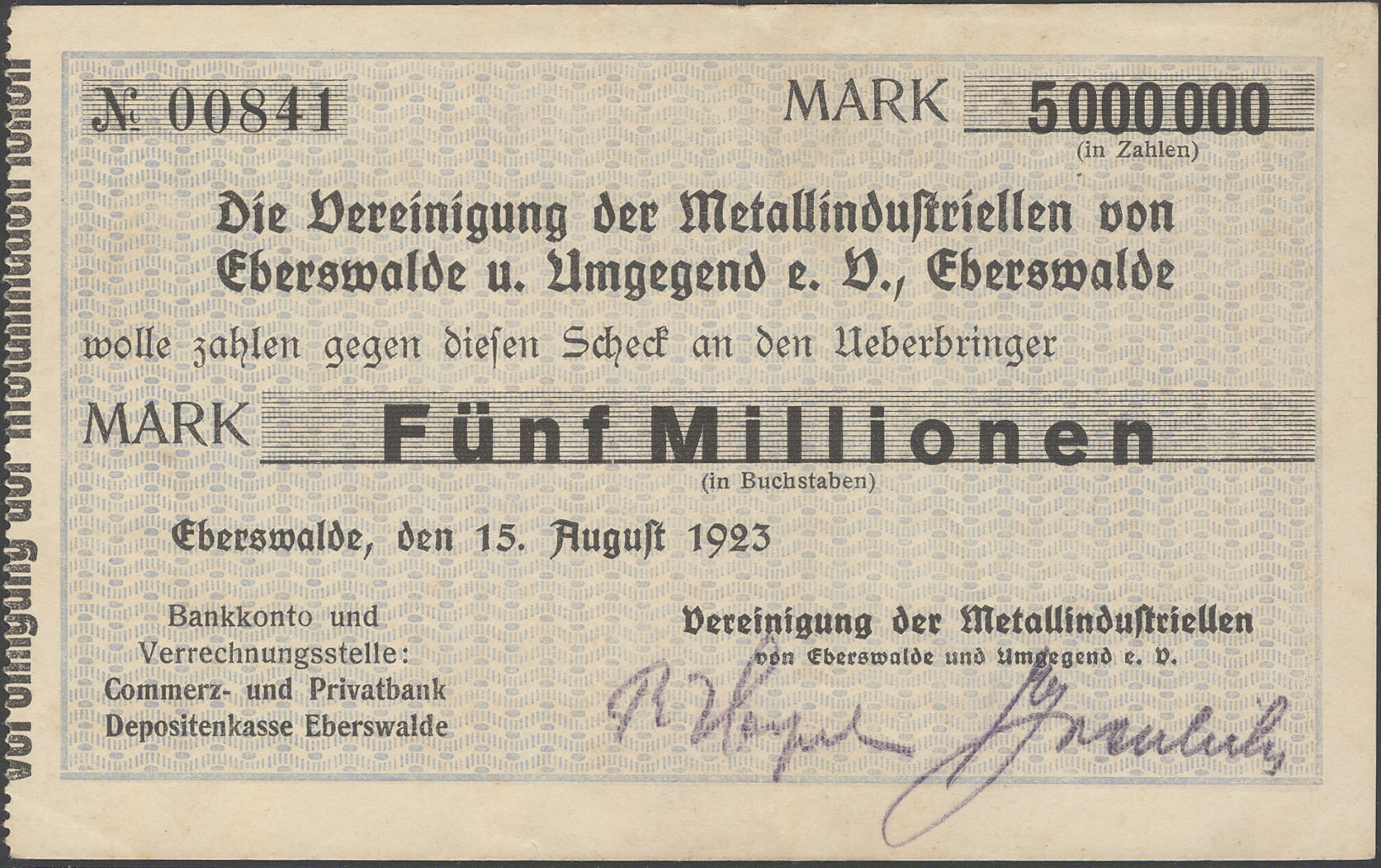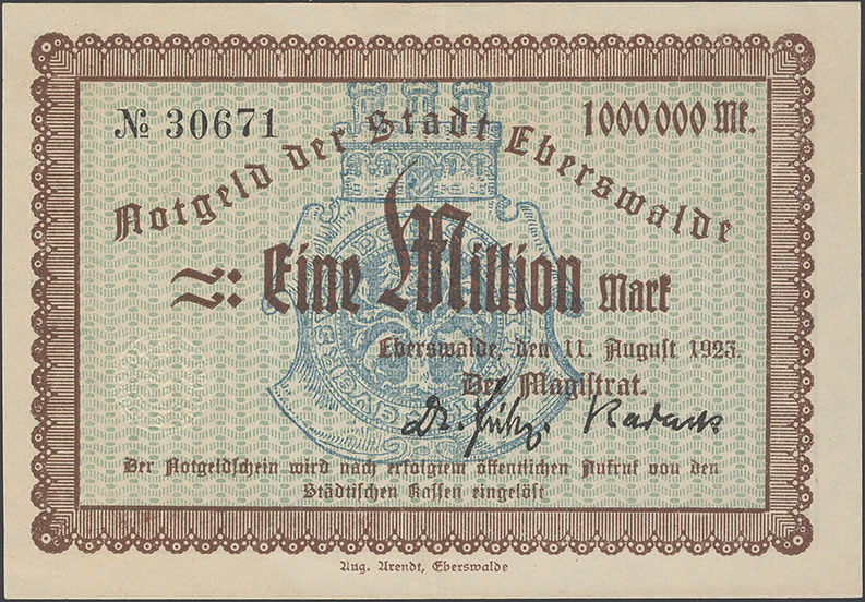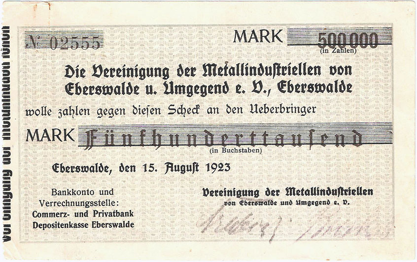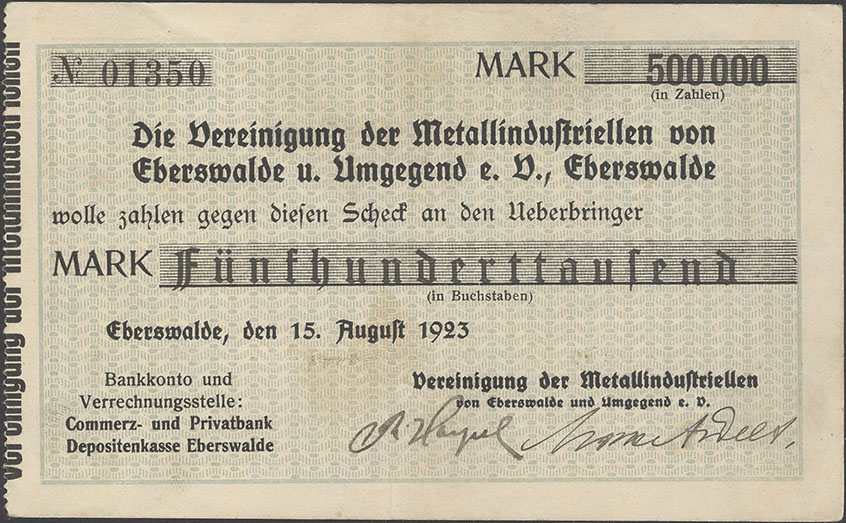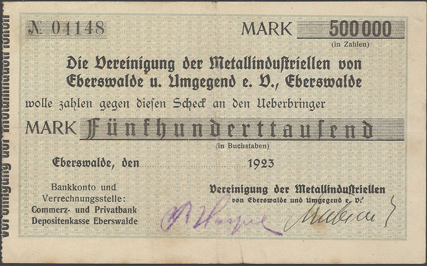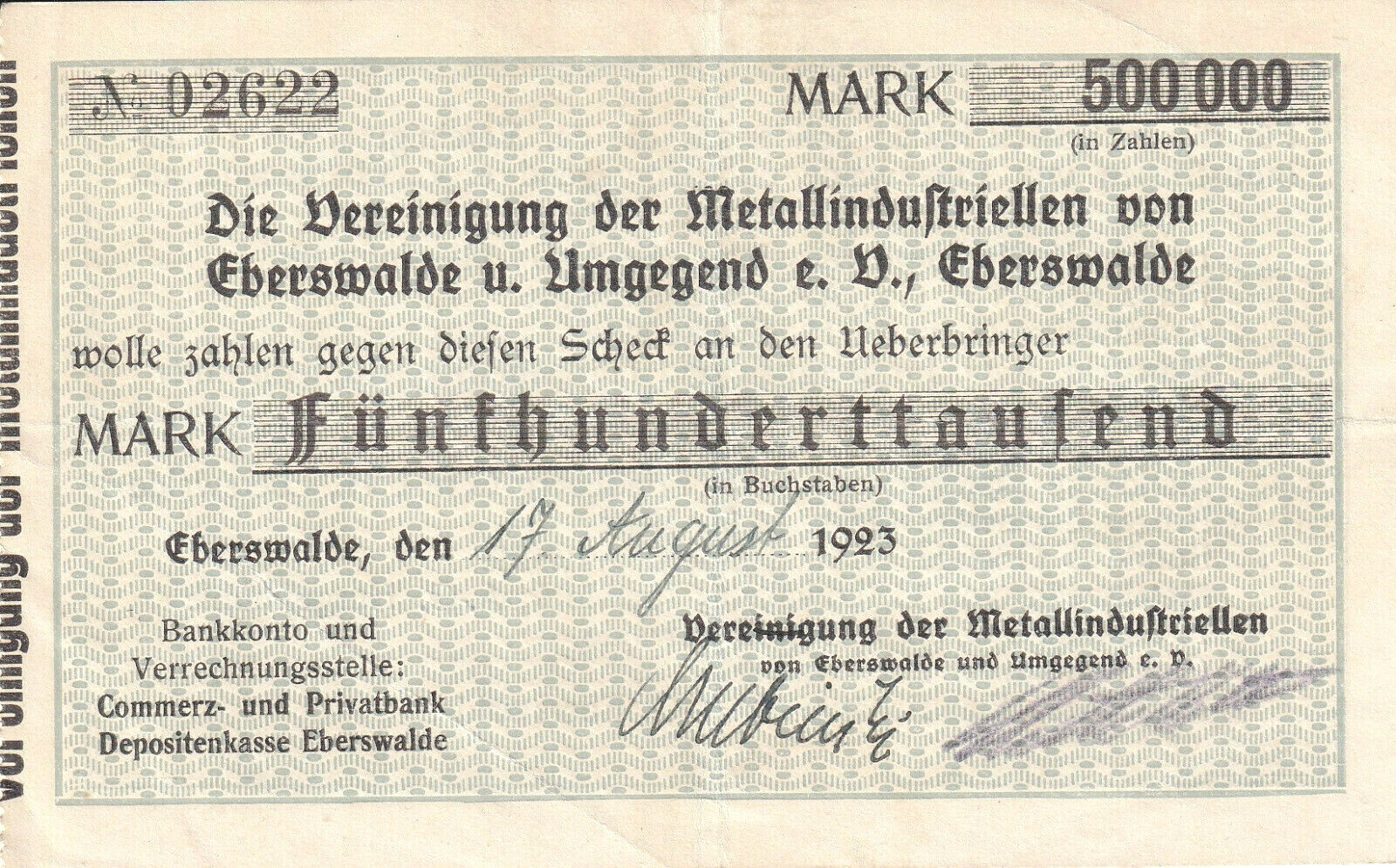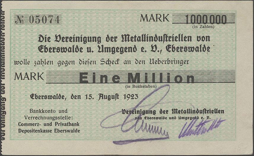 500.000 Mark | 1 Million Mark | 2 Millionen Mark | 5 Millionen Mark | 10 Milliarden Mark | 20 Milliarden Mark |