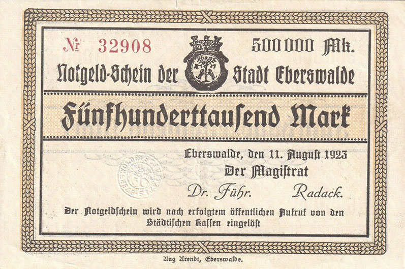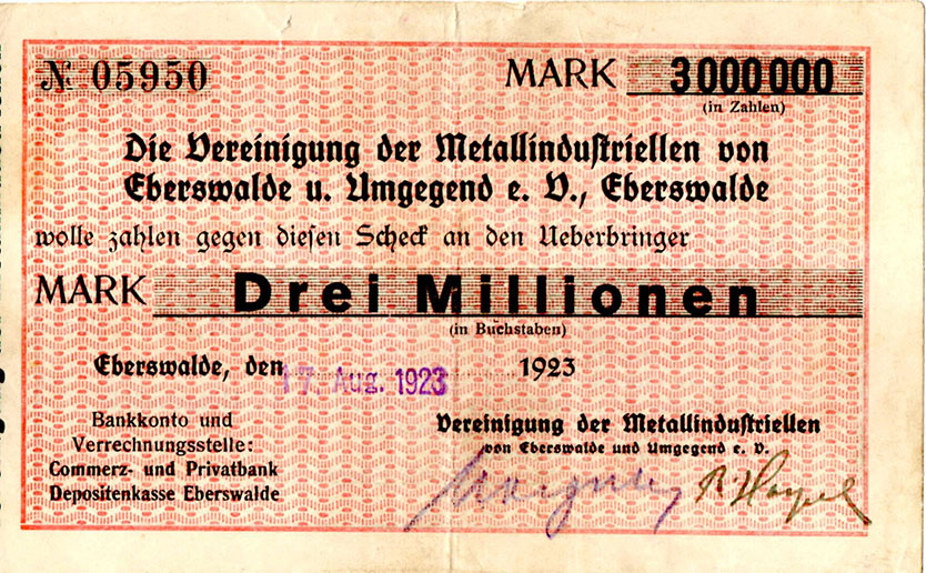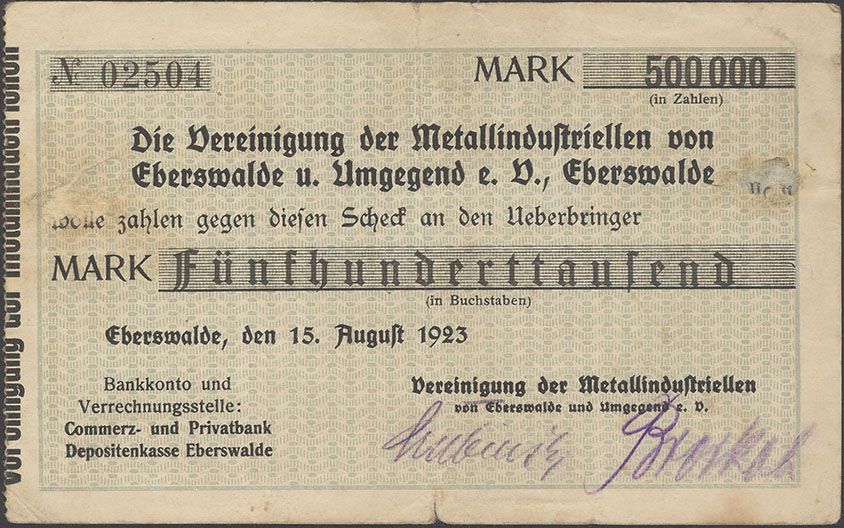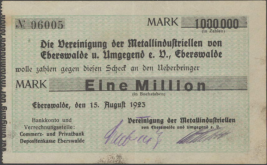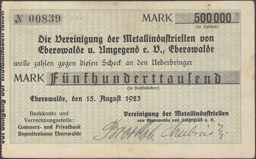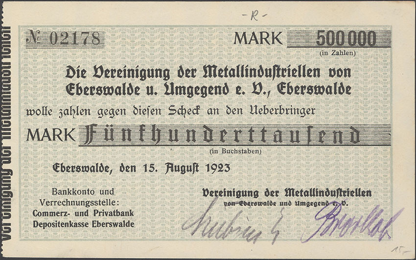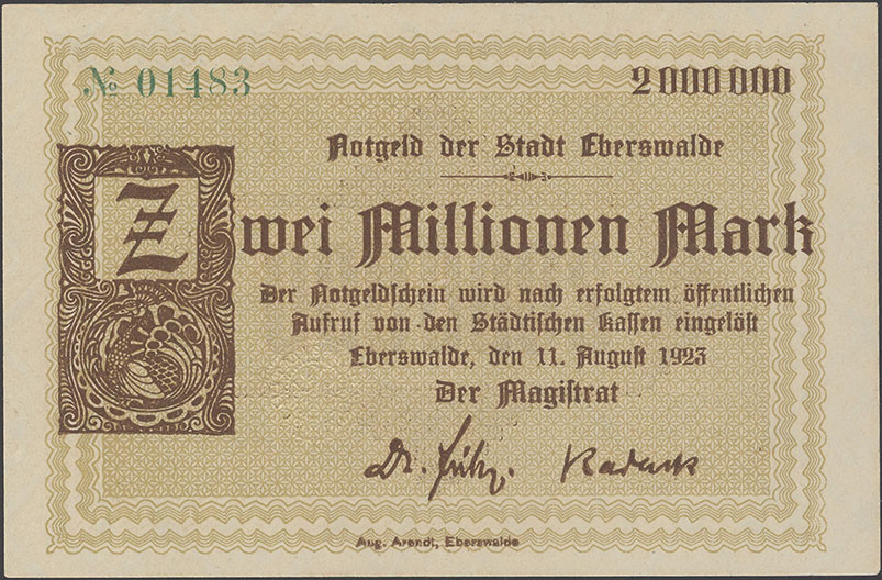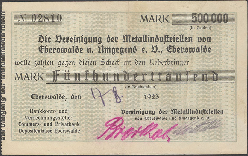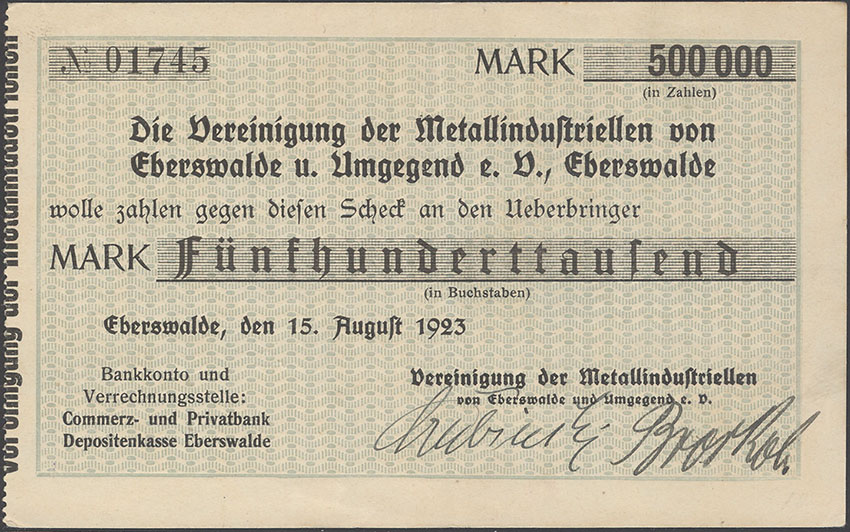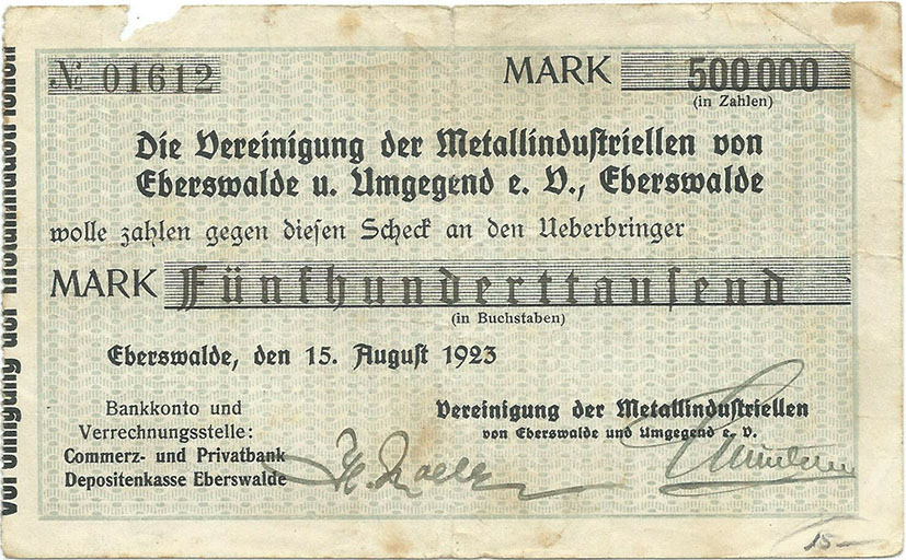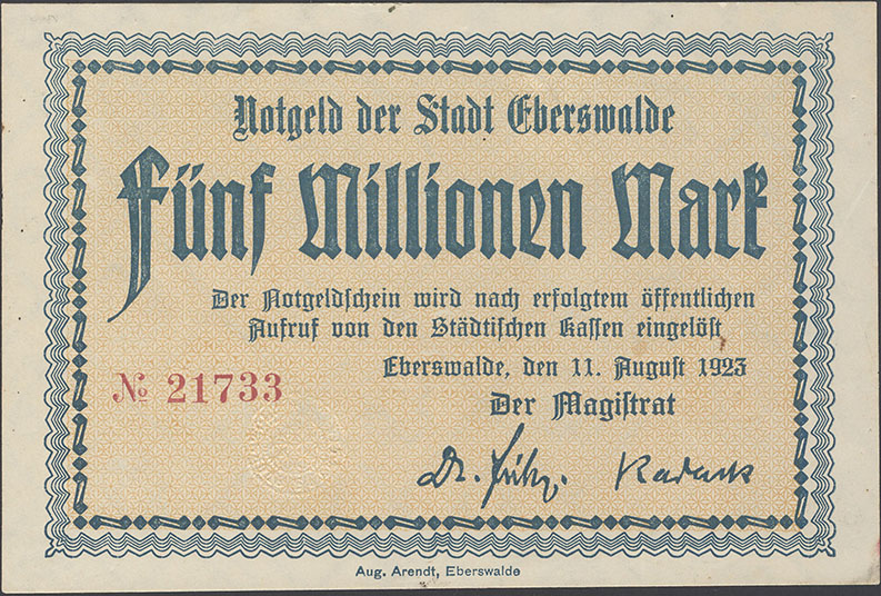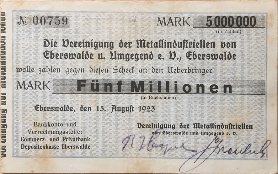 500.000 Mark | 1 Million Mark | 2 Millionen Mark | 5 Millionen Mark | 10 Milliarden Mark | 20 Milliarden Mark |
