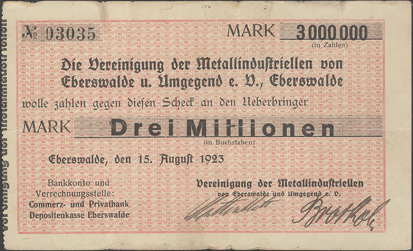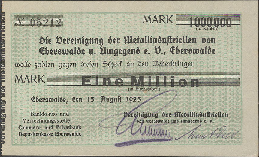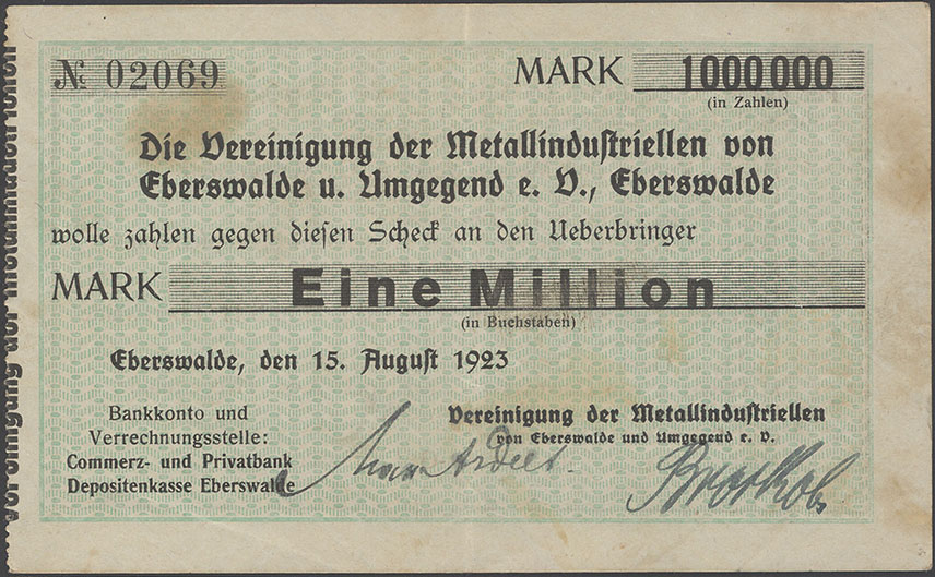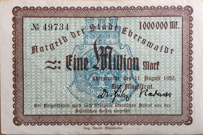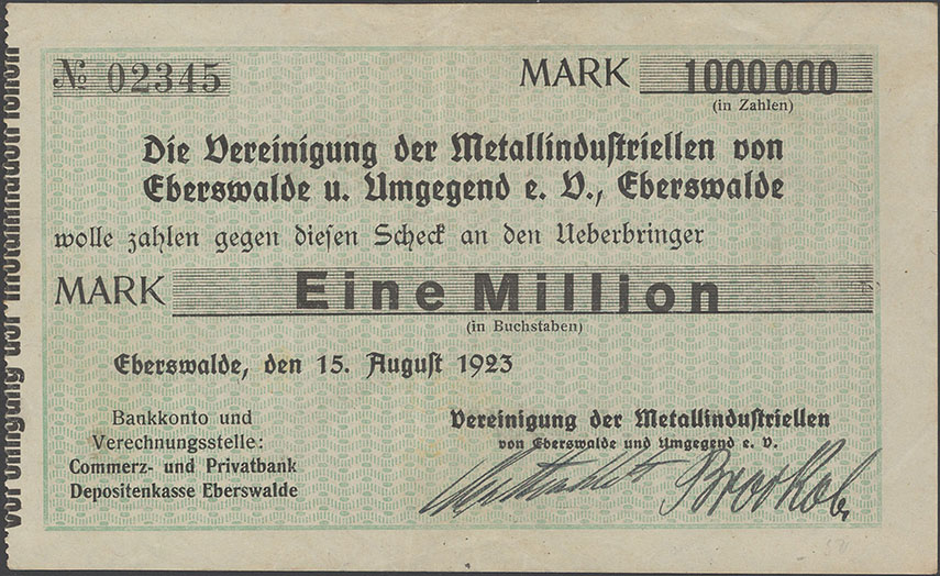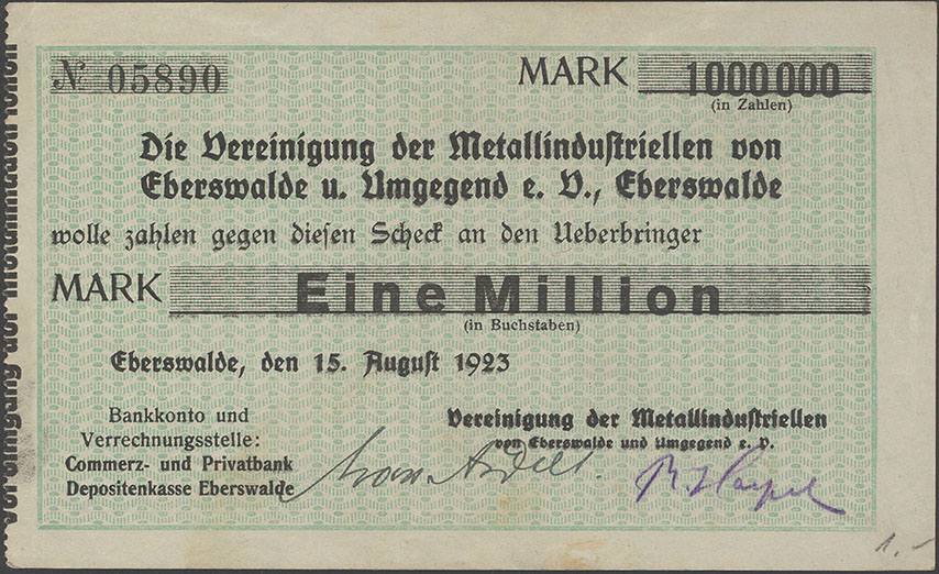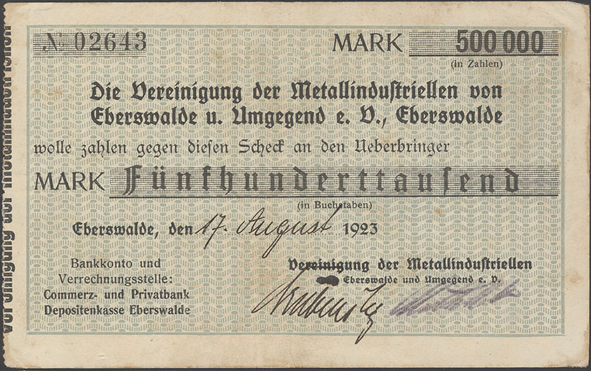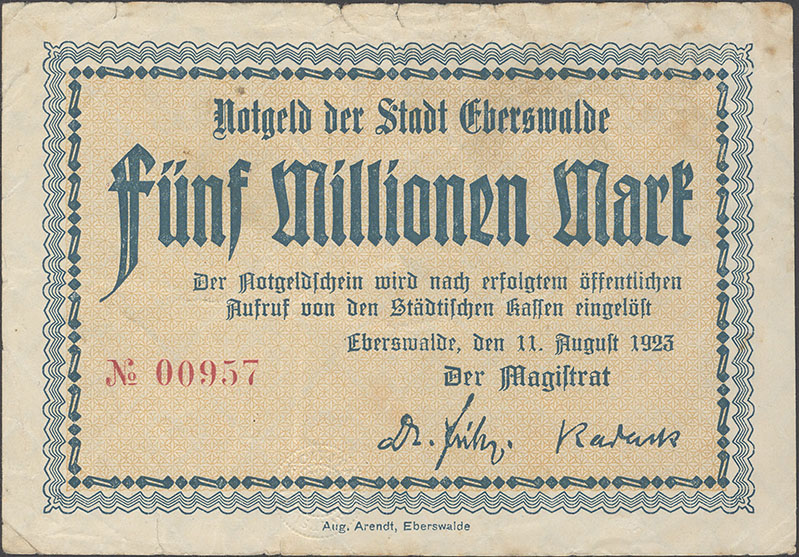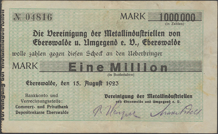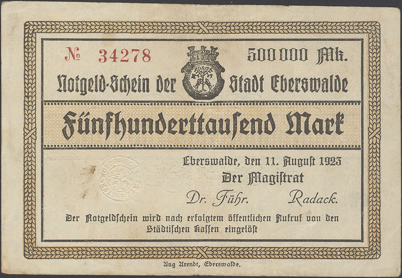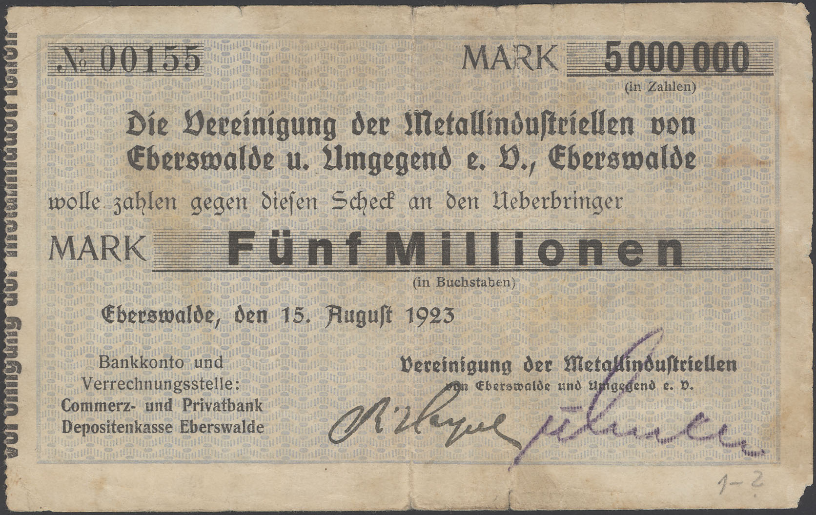 500.000 Mark | 1 Million Mark | 2 Millionen Mark | 5 Millionen Mark | 10 Milliarden Mark | 20 Milliarden Mark |