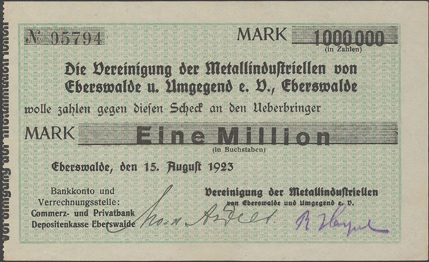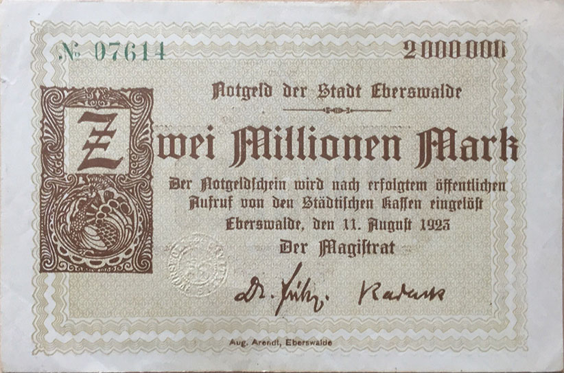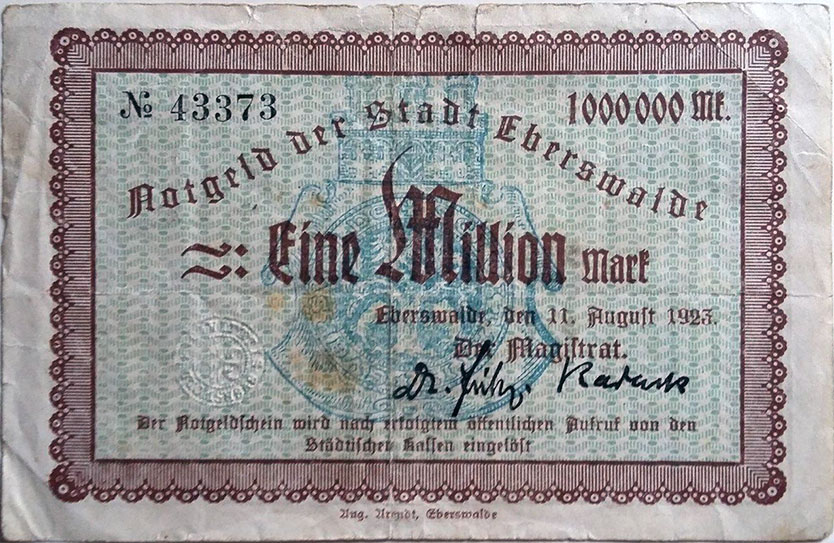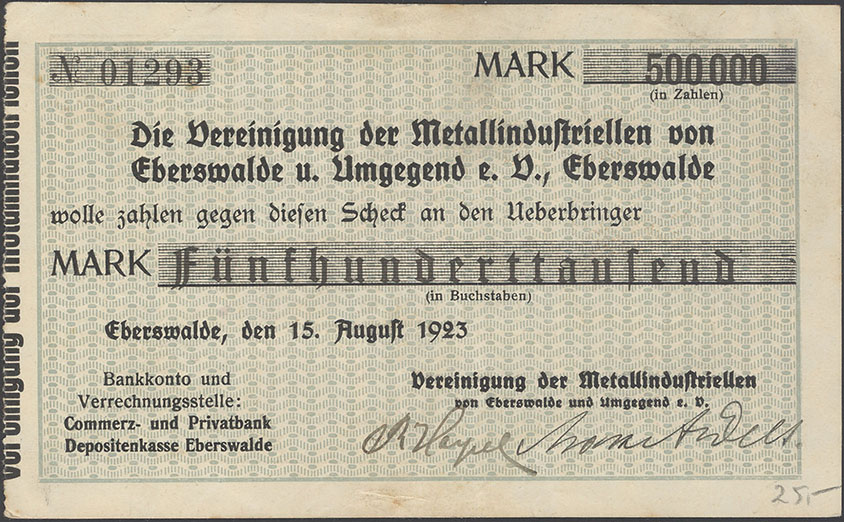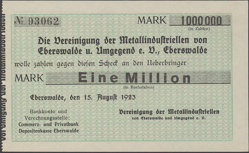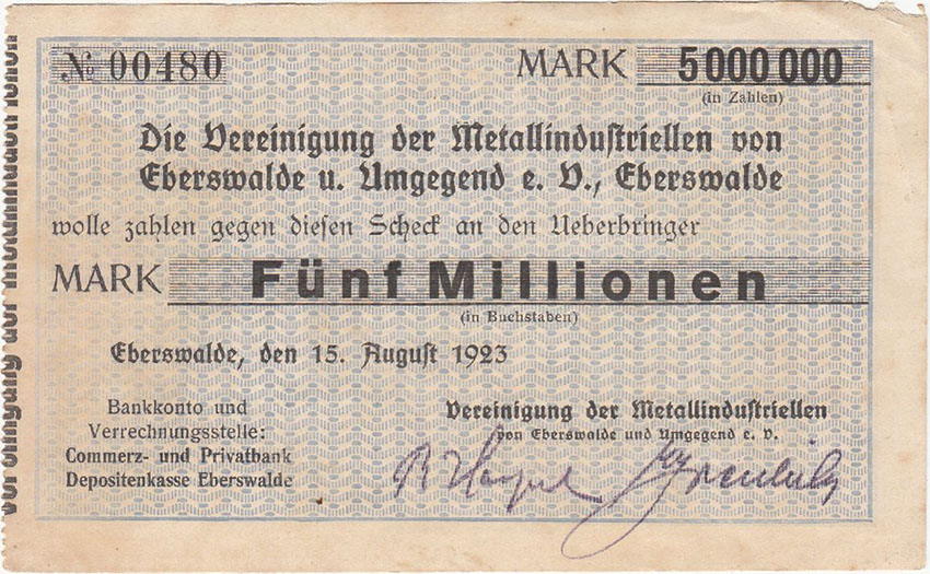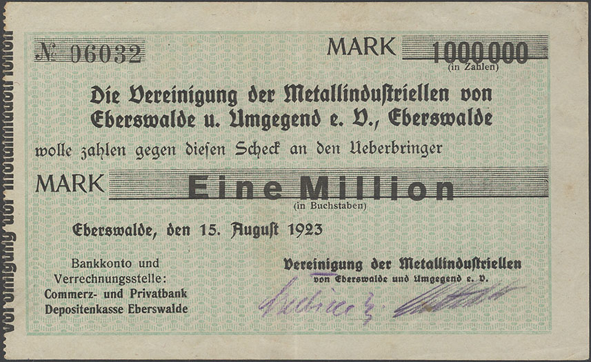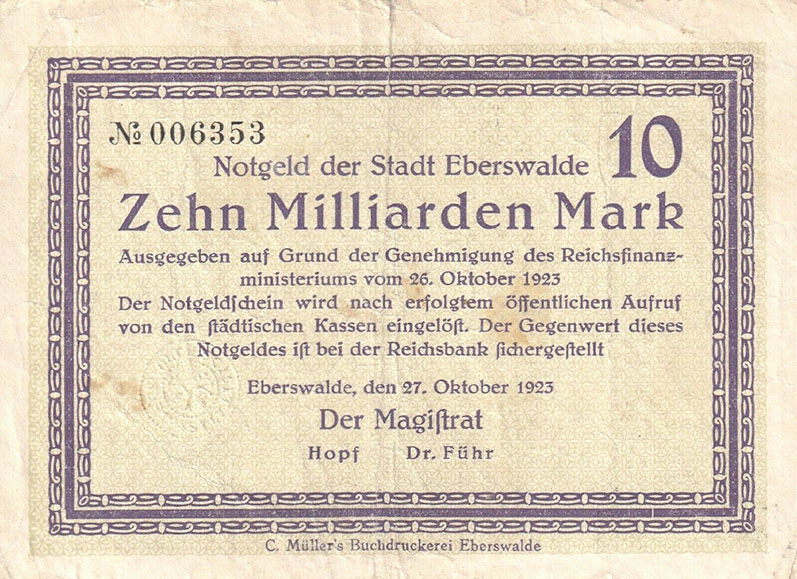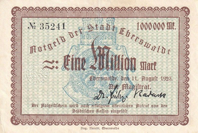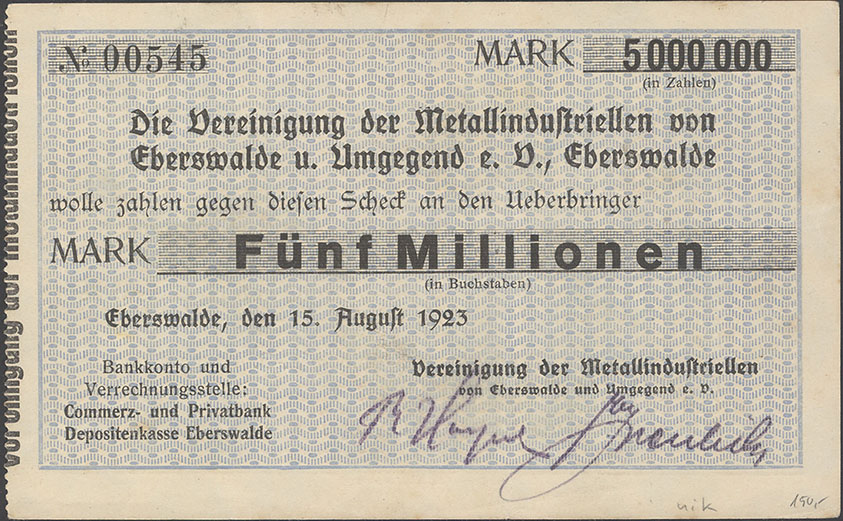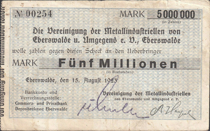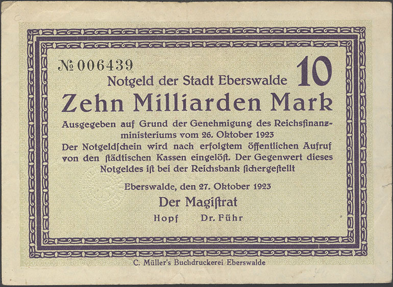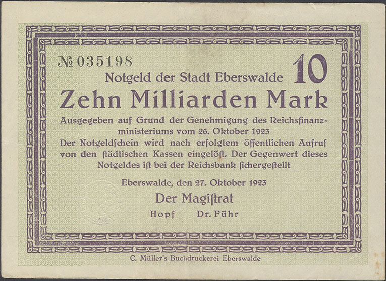 500.000 Mark | 1 Million Mark | 2 Millionen Mark | 5 Millionen Mark | 10 Milliarden Mark | 20 Milliarden Mark |