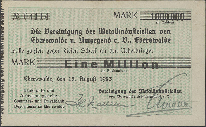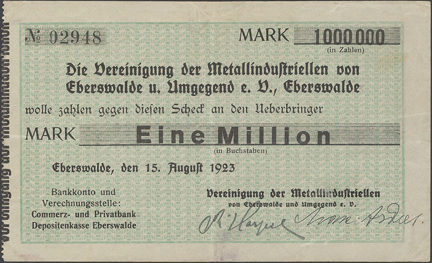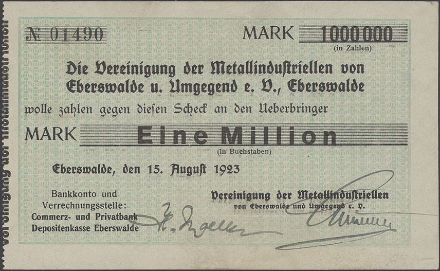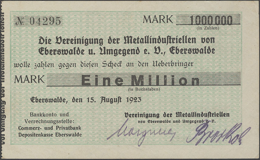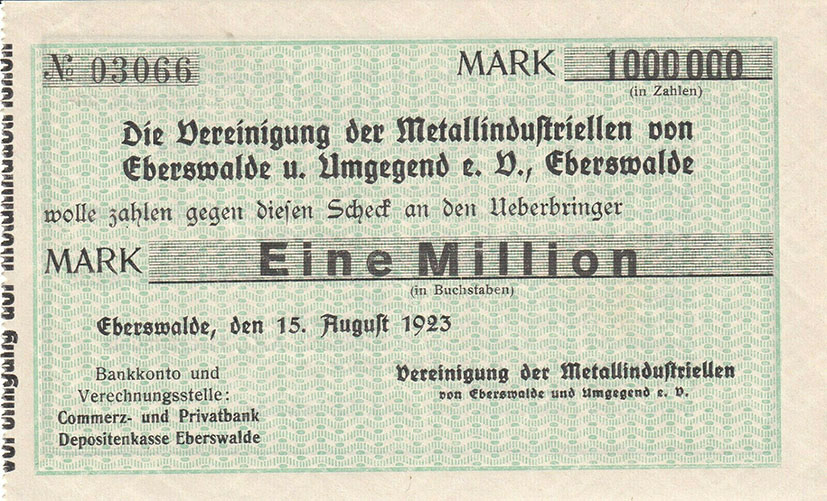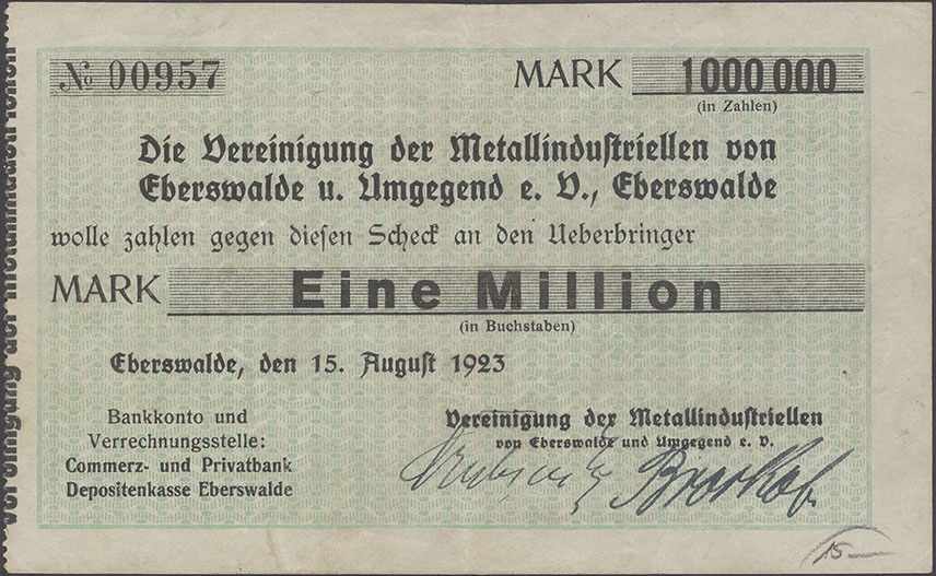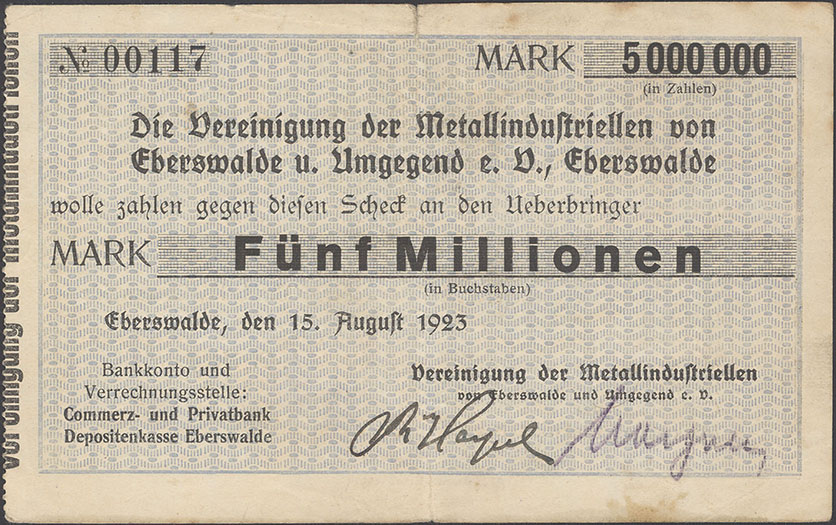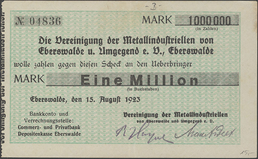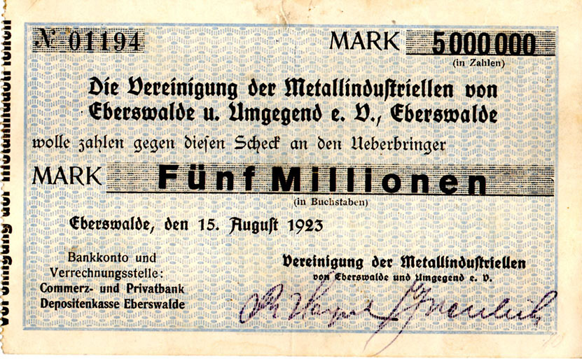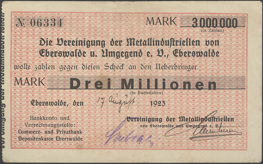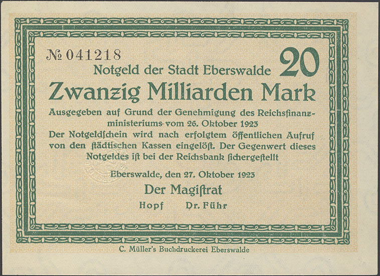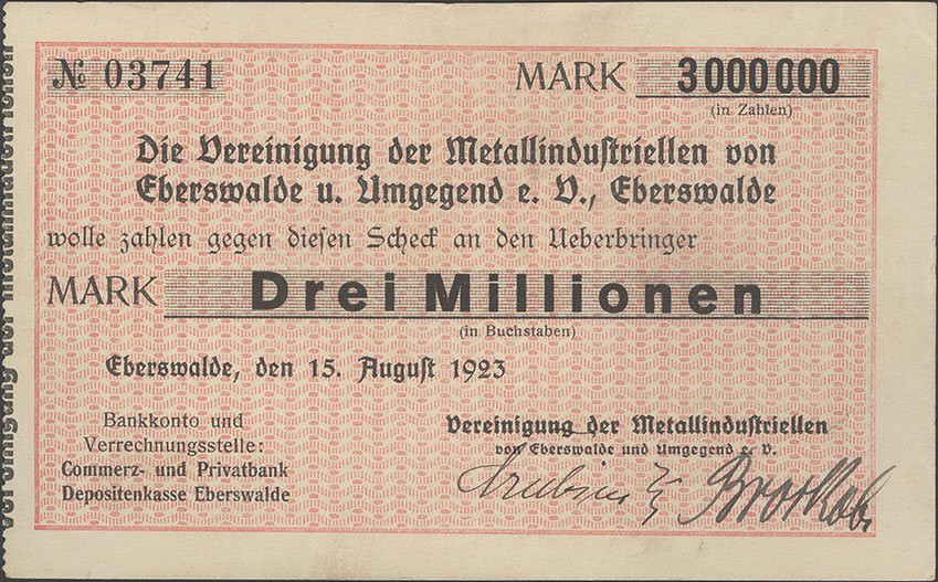 500.000 Mark | 1 Million Mark | 2 Millionen Mark | 5 Millionen Mark | 10 Milliarden Mark | 20 Milliarden Mark |