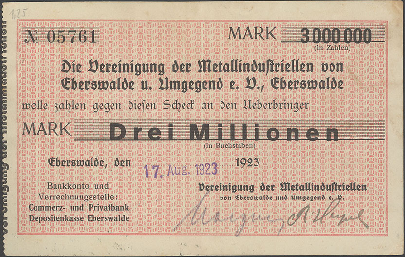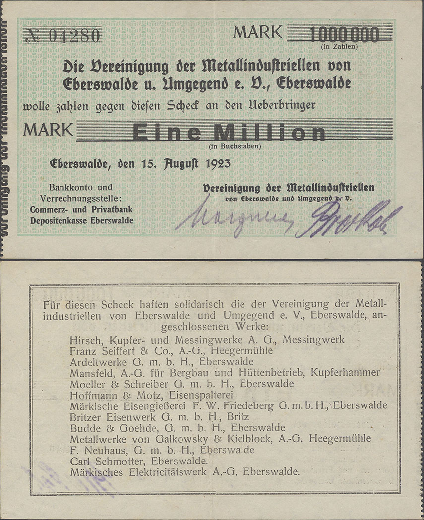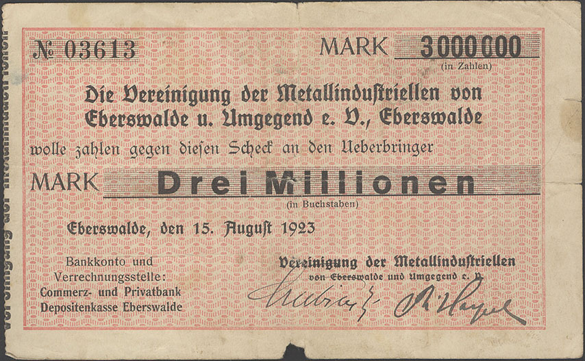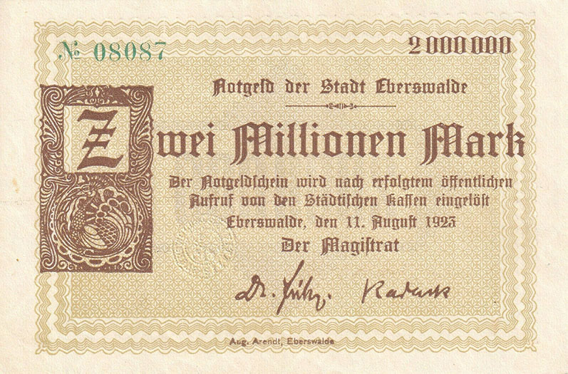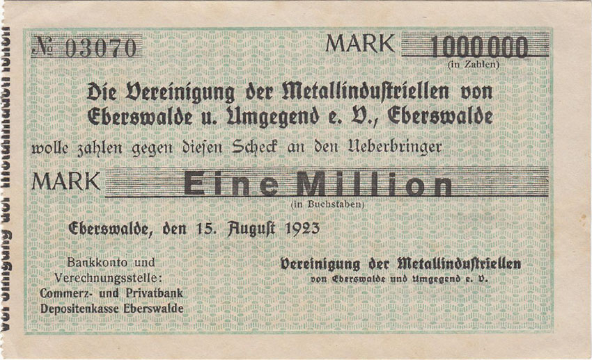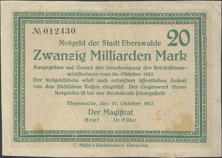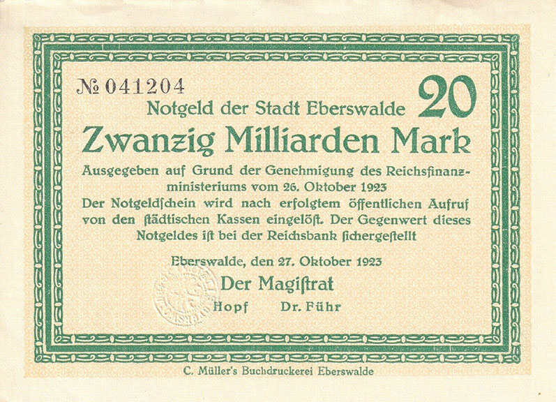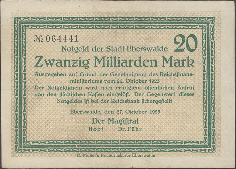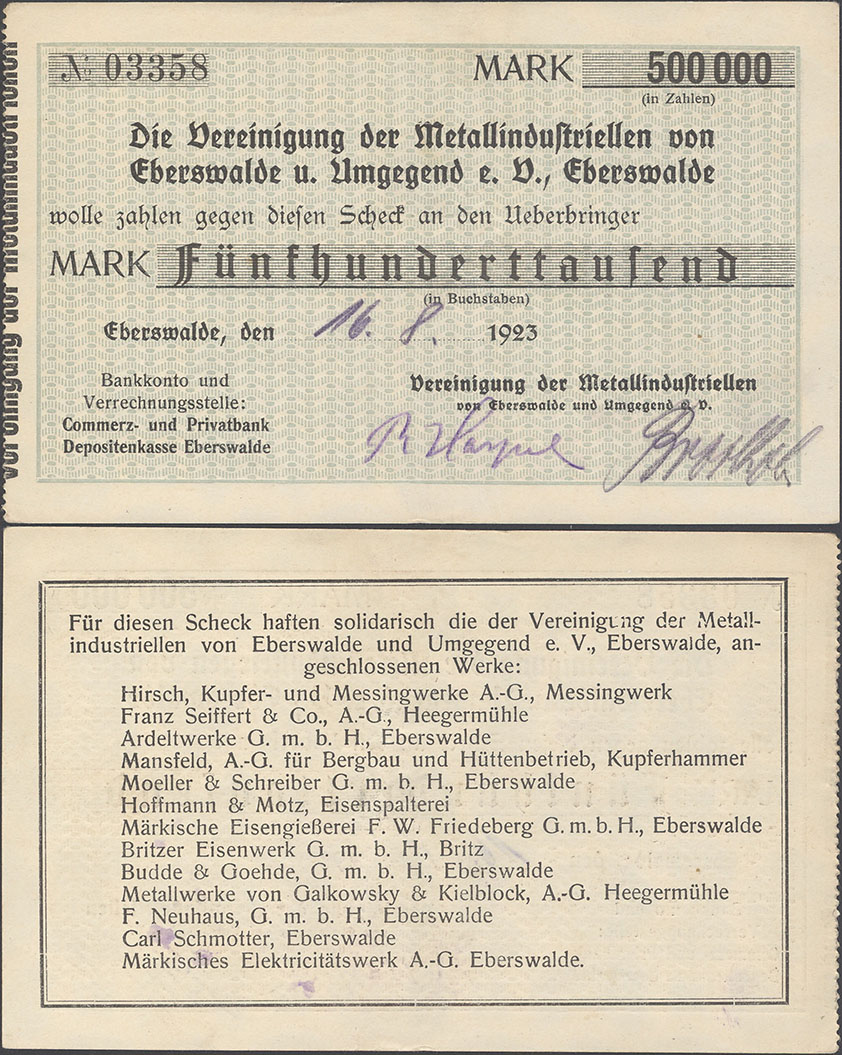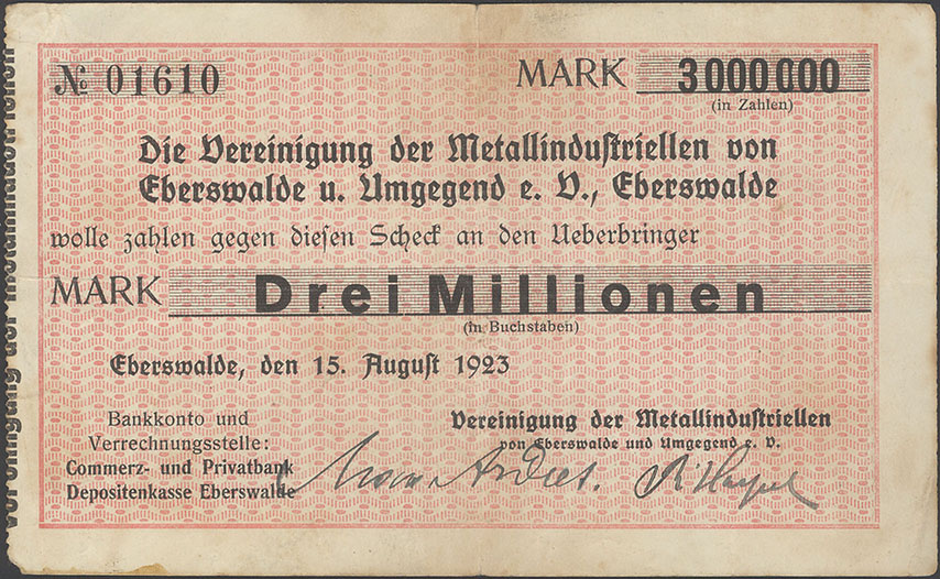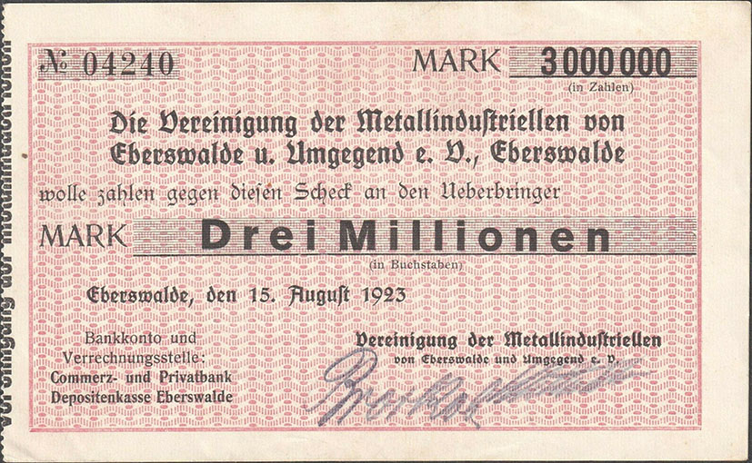 500.000 Mark | 1 Million Mark | 2 Millionen Mark | 5 Millionen Mark | 10 Milliarden Mark | 20 Milliarden Mark |