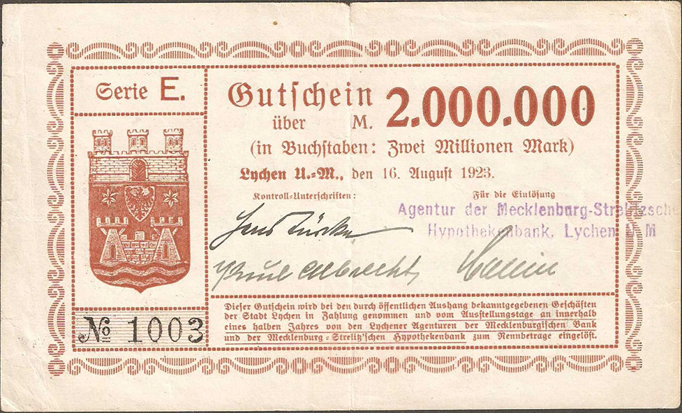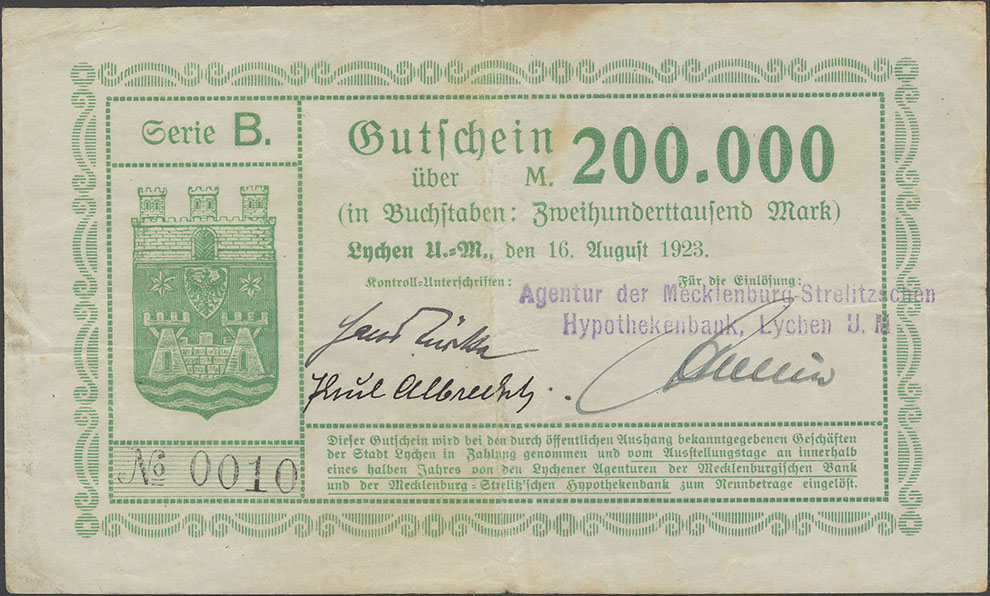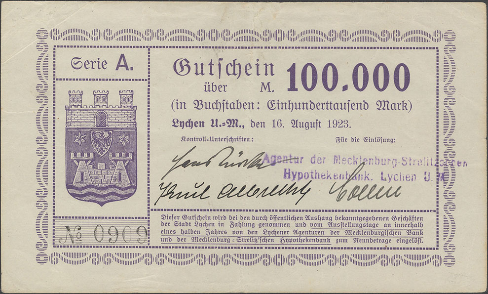 Seriennummern Mecklenburg-Strelitzsche Hypothekenbank