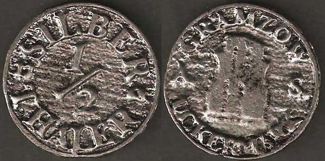 1/2 Silberthaler; o. J.; nicht katalogisiert; Vs.: "SILBER 1/2 THALER"; Rs.: "GRAMZOW UCKERMARK" mittig: Bildnis Klosterruine; Blei gegossen; Dm=26mm |