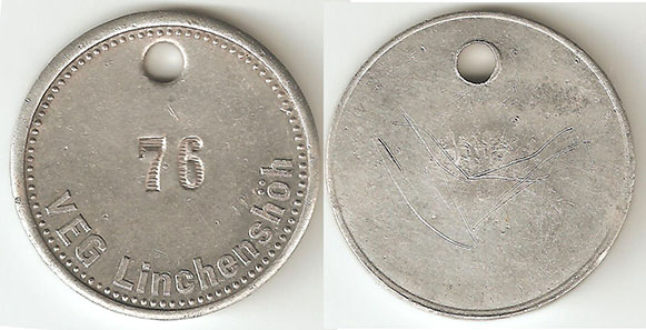 Vs.: Im Perlrand Wertziffer und unten umlaufend: VEG Linchenshöh;