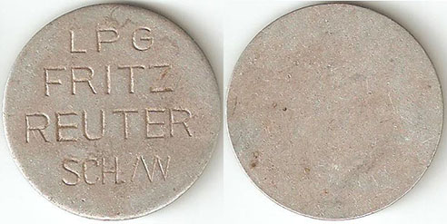 o. W.; o. J.; Menzel 37376.1; Vs.: LPG FRITZ REUTER SCH./W; Rs.: leer; Aluminium; Dm=30,5mm