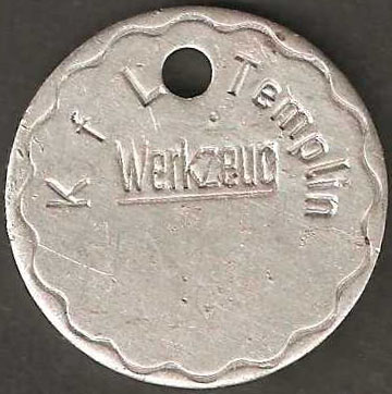 o. W.; o. J.; nicht katalogisiert; Vs.: KfL Templin Werkzeug; Rs.: leer; Aluminium; oben 4 mm gelocht; Dm = 30,0 mm |