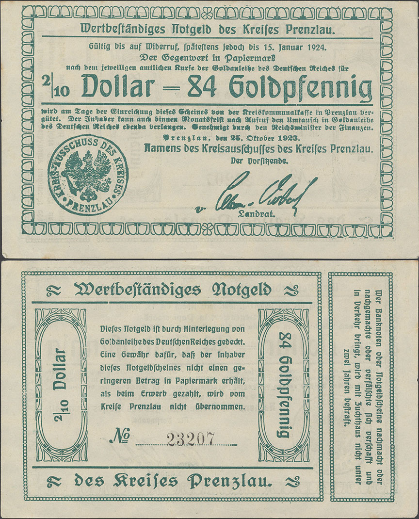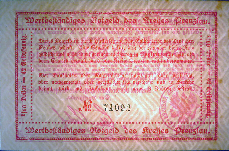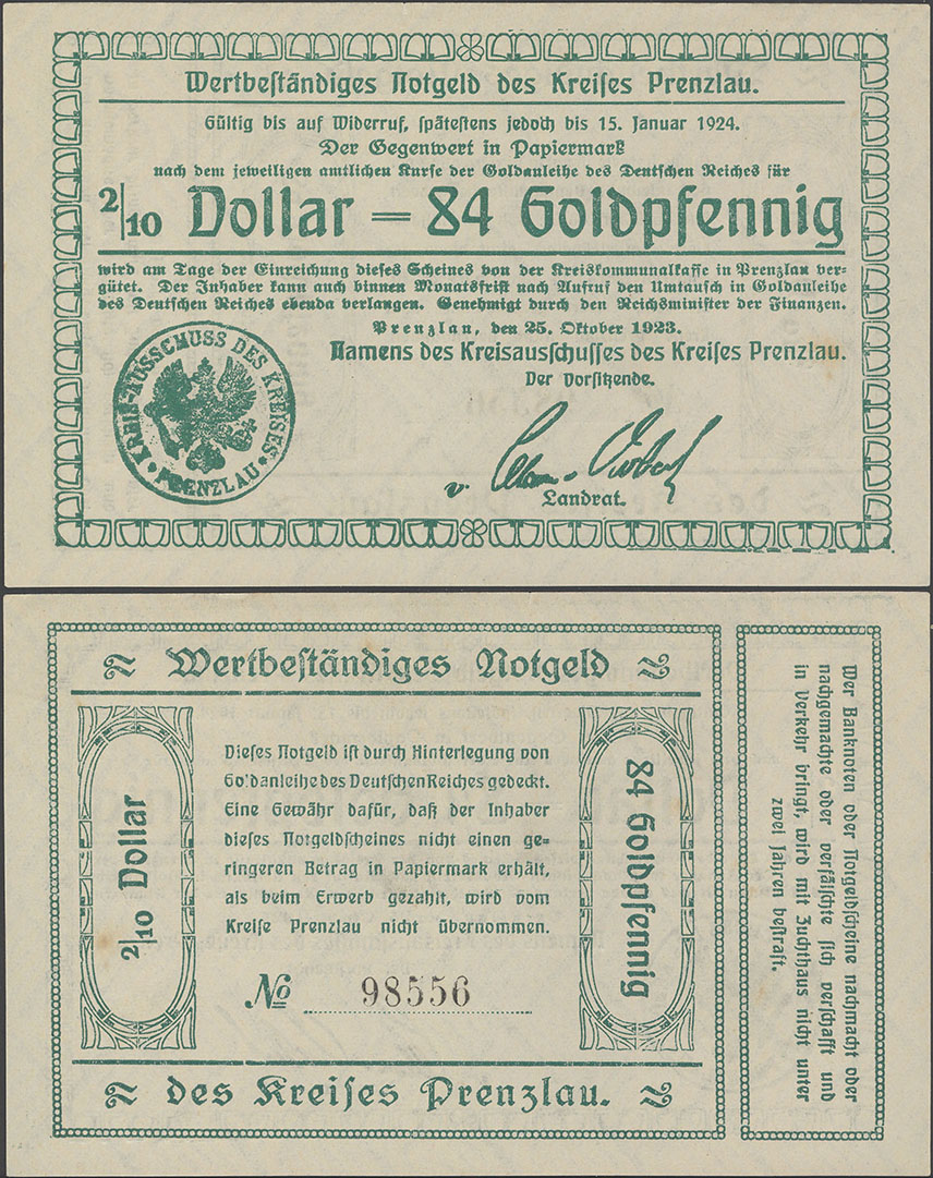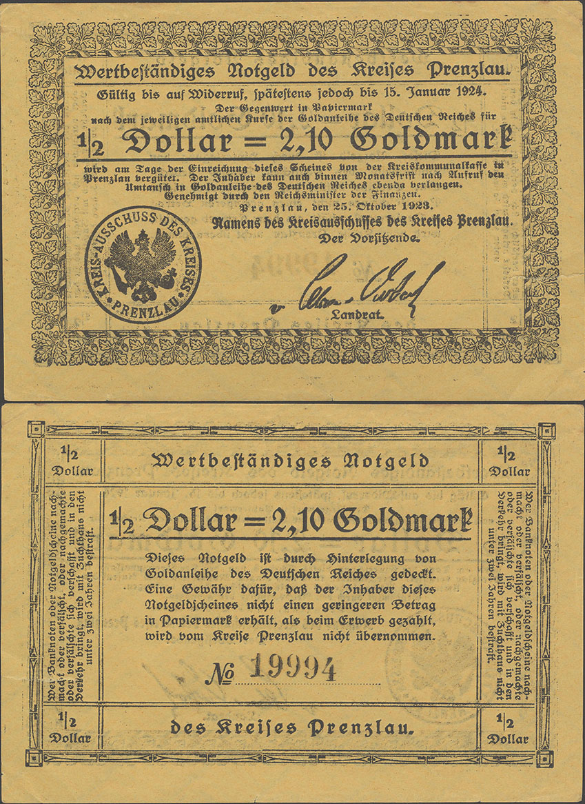 "Die Ausgabe von Kreisnotgeld bis zur Höhe von zweieinhalb Millionen Mark lasse ich, falls die Ausgabe in solcher Höhe erforderlich erscheint, zu."