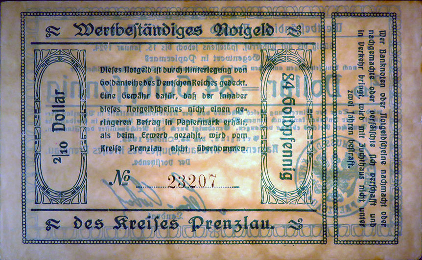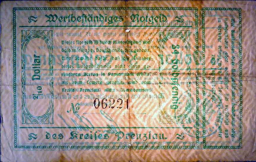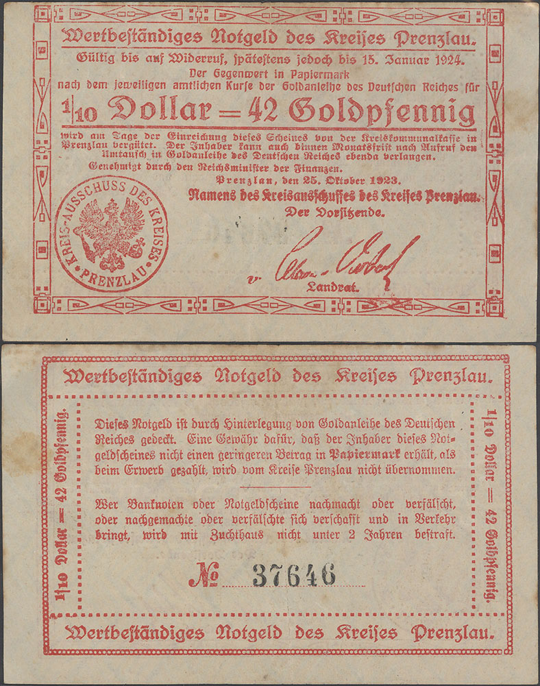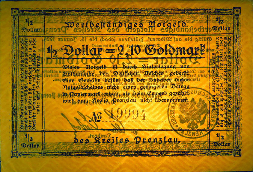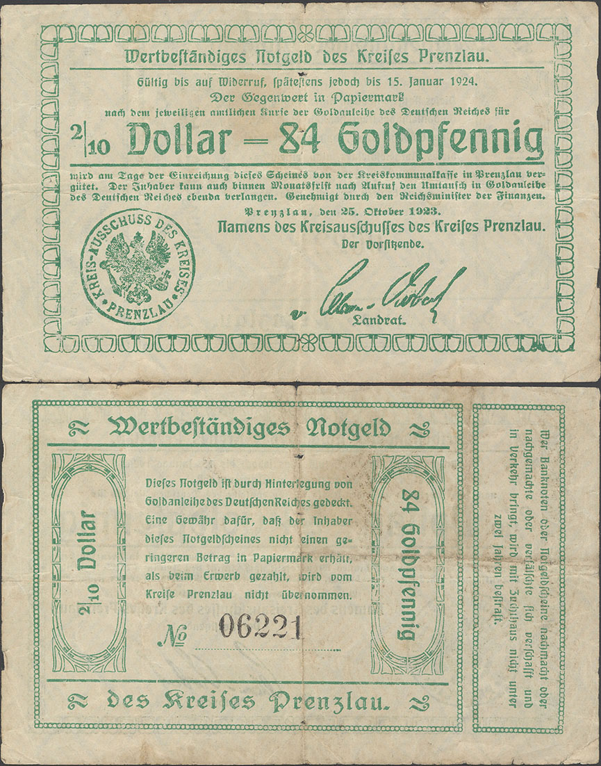 "Die Ausgabe von Kreisnotgeld bis zur Höhe von zweieinhalb Millionen Mark lasse ich, falls die Ausgabe in solcher Höhe erforderlich erscheint, zu."