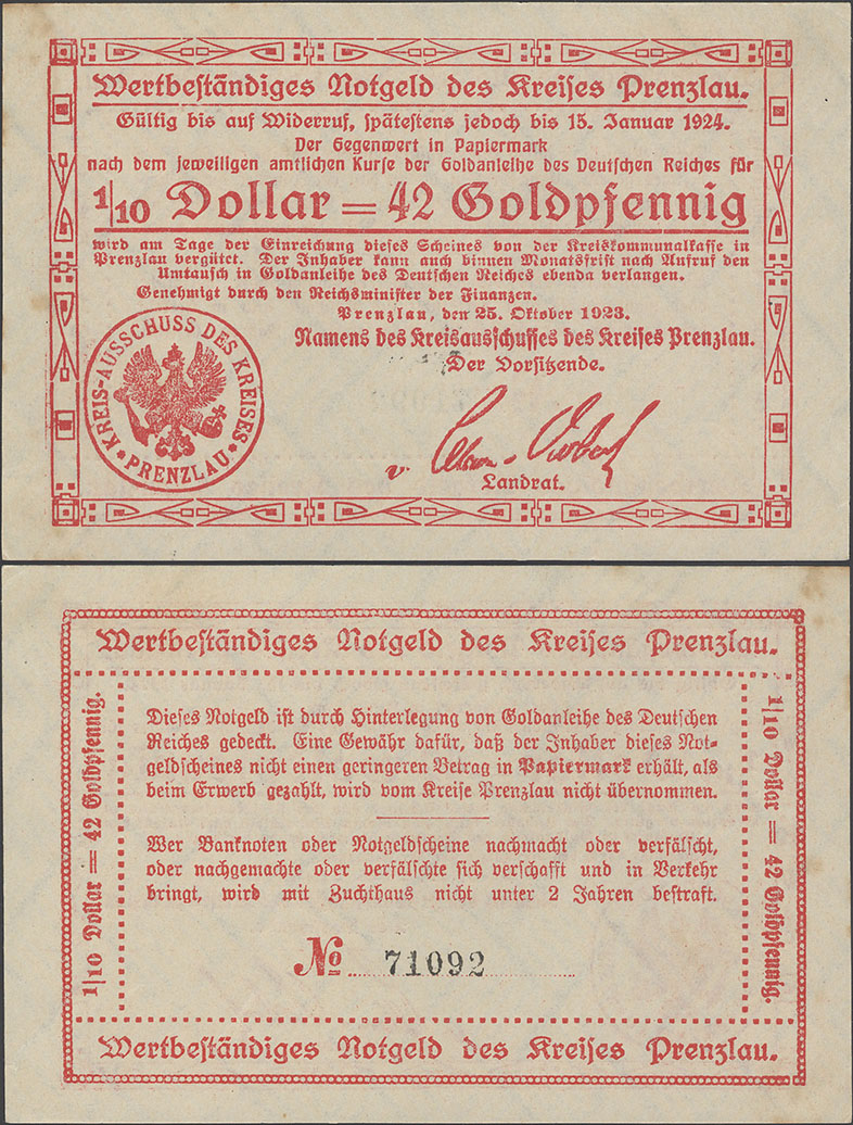 "Das deutsche Notgeld, das wertbeständige Notgeld (Goldnotgeld) 1923/1924" |