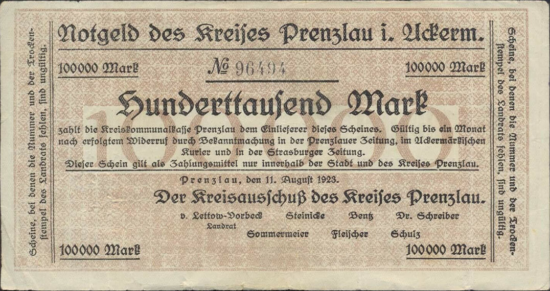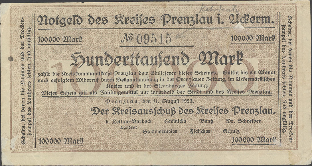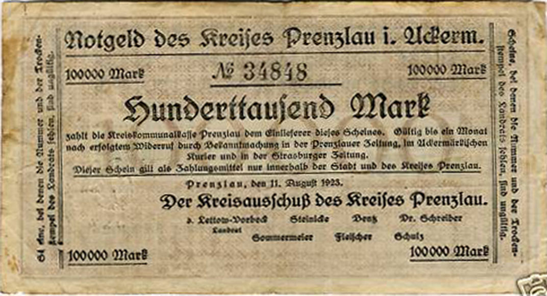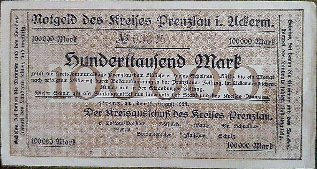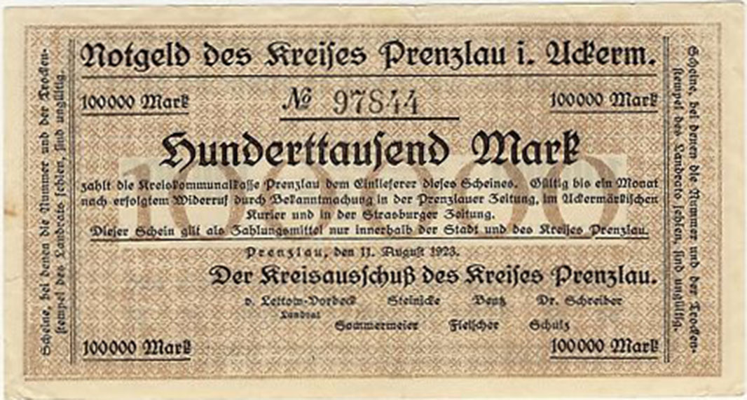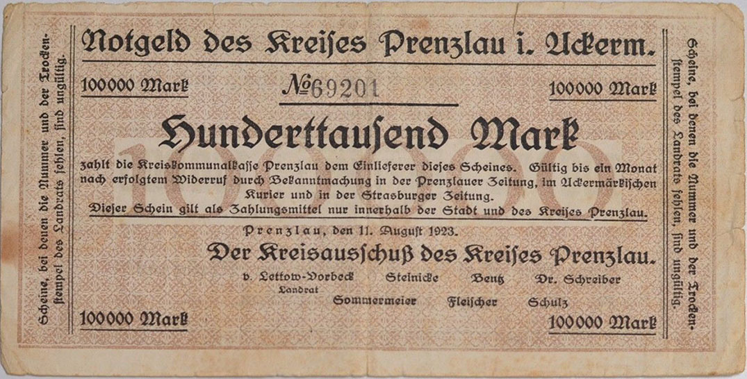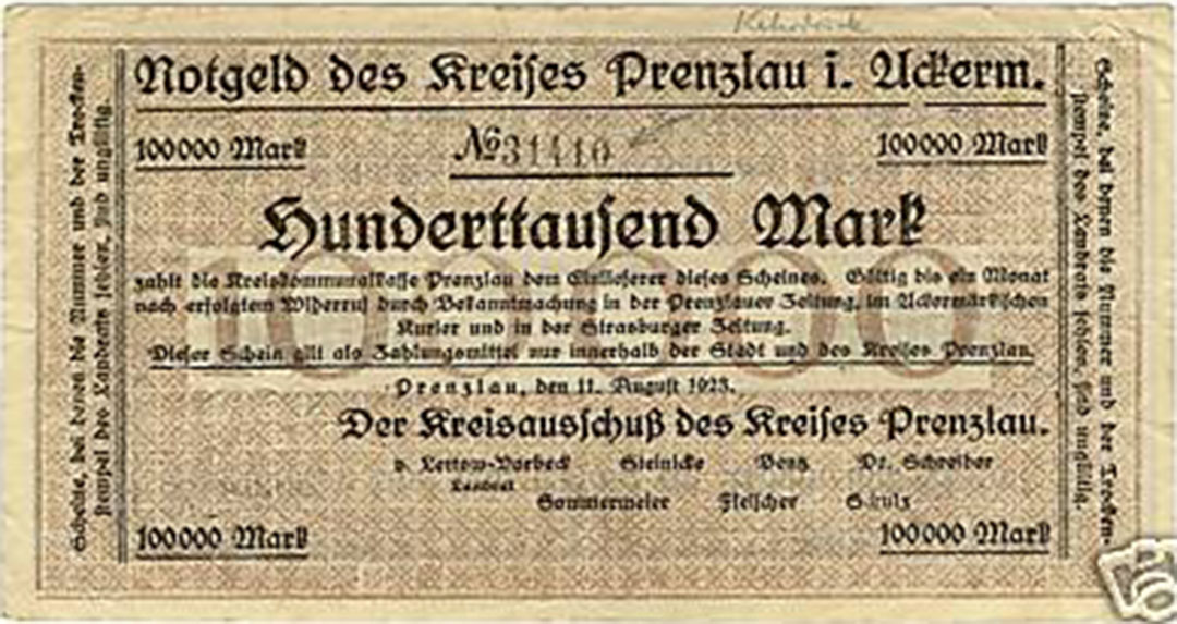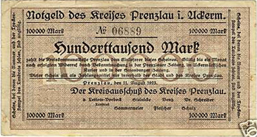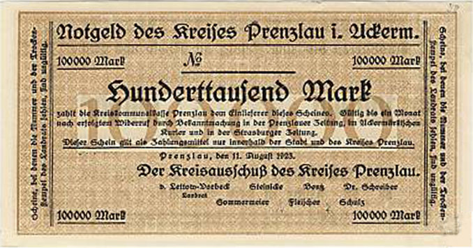 100.000 Mark | Rs. für 100.000 Mark | 500.000 Mark | 1 Million Mark |