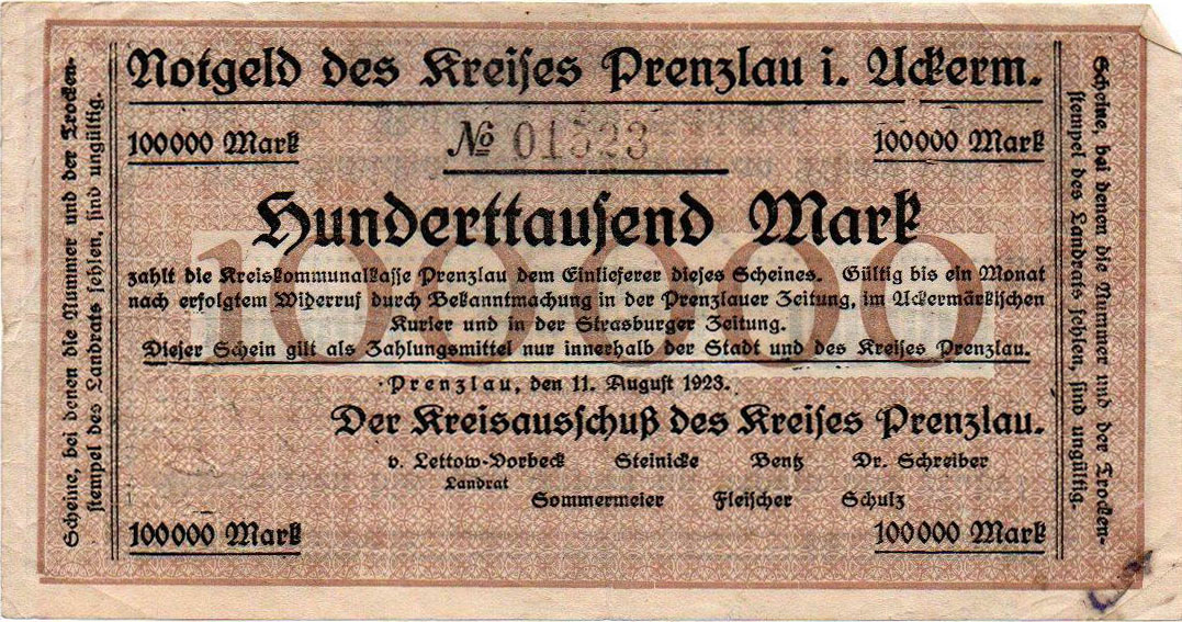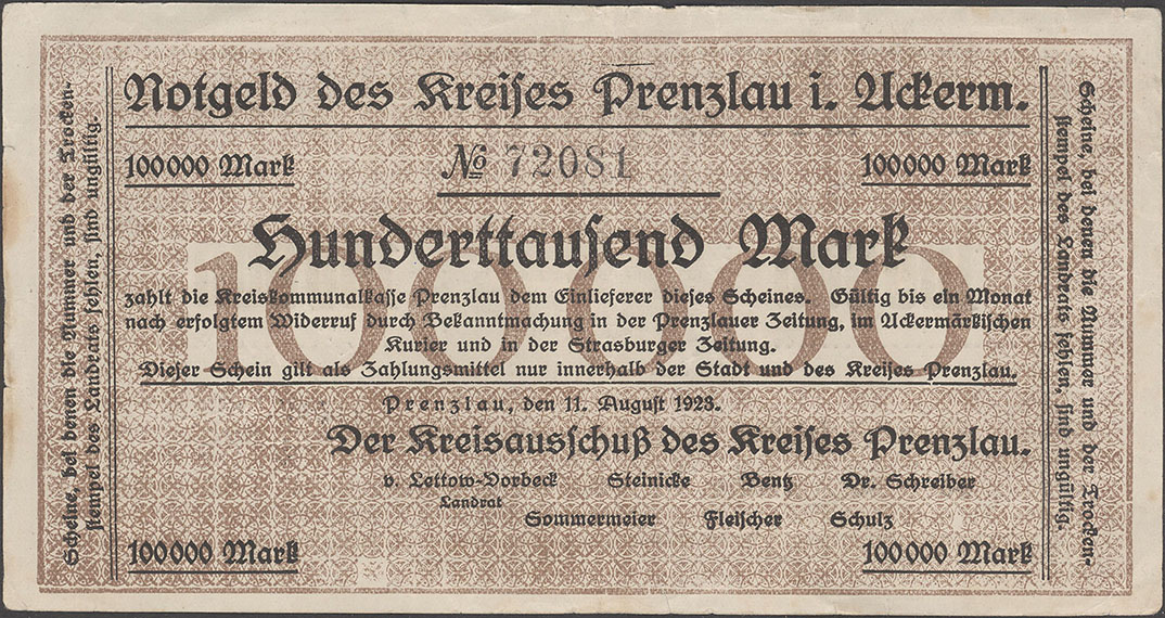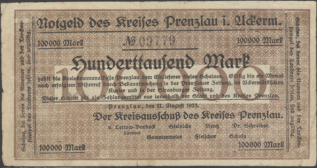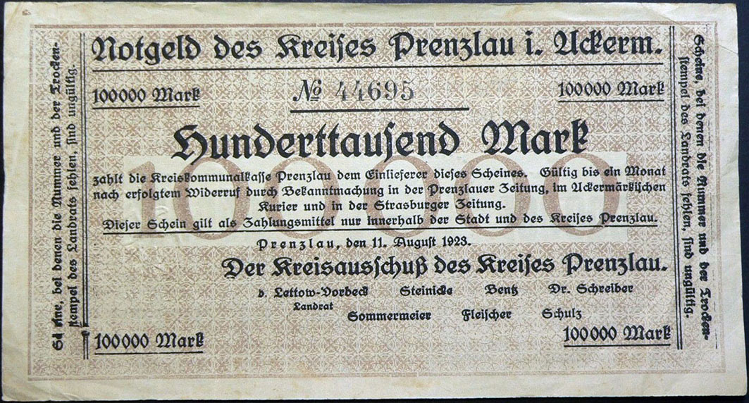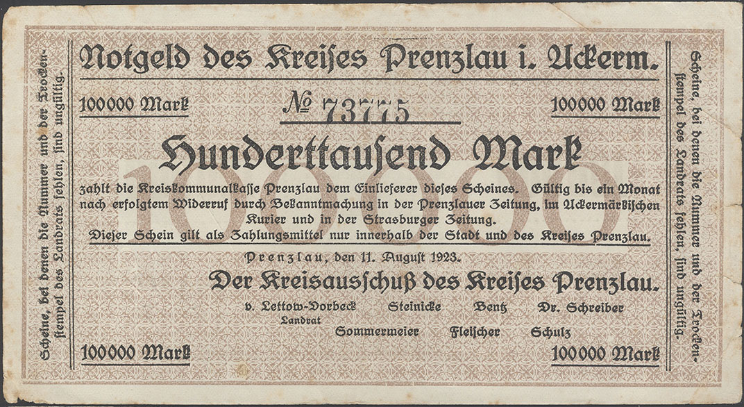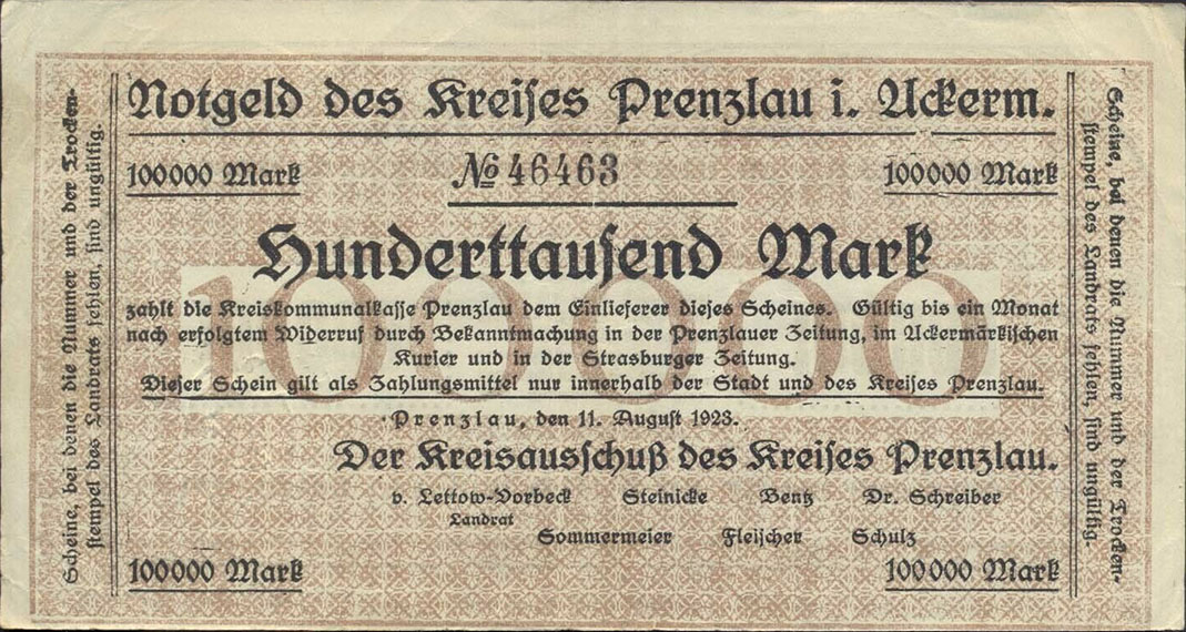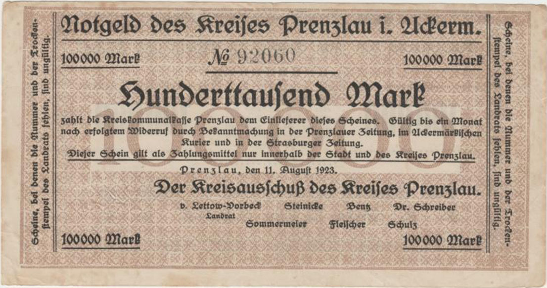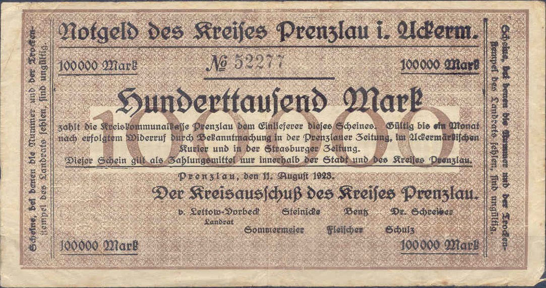 100.000 Mark | Rs. für 100.000 Mark | 500.000 Mark | 1 Million Mark |