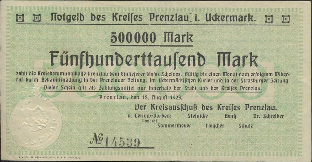 50.000 Mark | 1 Million Mark | 2 Millionen Mark |