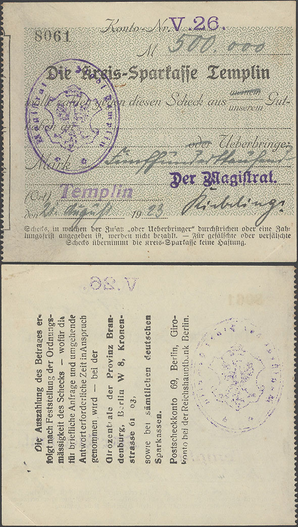 500.000 Mark 11.08.1923 | 100.000 Mark 13.08.1923 | 200.000 Mark 14.08.1923 | 1 Million Mark 14.08.1923 |