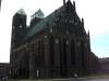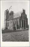 Die St. Marienkirche wurde in sechs verschiedene Bauzeiten erbaut und ist ein weit über Deutschlands Grenzen hinaus bekanntes Kunstdenkmal. Die erste Bauperiode fiel in die Zeit von 1235-1250. Aus dieser sind nur noch geringe Reste im jetzigen Bauwerk sichtbar, die jedoch erkennen lassen, daß dieser Erstbau ein dreischiffiger Hallenbau mit drei Satteldächern (Kreuzkirche) war und bedeutend kürzer angelegt wurde. Die zweite Bauperiode fand in der zweiten Hälfte des 13. Jahrhunderts statt und diente hauptsächlich der Schaffung des Turmunterbaues bis Feldsteinhöhe. ![]() Die dritte Bauperiode brachte 1325 infolge beengter Raumverhältnisse den Abbruch des größten Teils des vorhandenen Kirchenschiffes mit sich. Ein dreischiffiger Neubau von 1325 bis 1340 in gotischem Stil mit Erweiterung des Turmunterbaues wurde zu großen Teilen durchgeführt, kam aber noch nicht zur endgültigen Vollendung. In dieser Zeit entstand auch der nur einmalig in Deutschland vorhandene, ganz aus Backstein gefertigte Ostgiebel. Die vierte Bauperiode schuf insbesondere die Verbindung zwischen Ost- und Westteil der Kirche mit dem Aufbau der beiden Treppentürmchen, die zum Dachrinnenaufgang führen. Das Portal auf der Südseite nahe dem Turm und das zur Marienkirchstraße führende Portal ohne Vorhalle, wurden damals geschaffen. Ferner entstand zu dieser Zeit der Südanbau im vierten Joch dicht an der Margarethenkapelle. Die reichere Ausstattung der Südseite durch Anlage mehrerer Anbauten und Portale sowie durch lebhaftere Färbung der Glasuren im Gegensatz zur Nordseite läßt erkennen, daß man von Anfang an mit einer freien Lage der Kirche zur Wittstraße hin rechnete. Die fünften Bauperiode um etwa 1412 fiel dem Bau der Nordvorhalle, der vollständig von dem bisher beibehaltenen Baustil abwich, zu. An der Südseite errichtete man um das Jahr 1500 vor dem dritten Joch in der Nähe des Treppentürmchens die Totengräberwohnung, das sogenannte „Gotteskastenhaus“, die 1845 einstürzte und restlos entfernt wurde. Im Jahre 1567 erbaute Fabian Petersen eine Orgel für die St. Marienkirche. Die sechste Bauperiode brachte den Ausbau der beiden Türme mit ihren schlanken Spitzen zur Vollendung. Diese Türme endeten noch in hohen hölzernen Achteckhelmen, die je vier Eckspitzen hatten. Die obersten Geschosse der Türme waren durch eine frei schwebende und gedeckte Holzbrücke miteinander verbunden, wie es auf dem Merian-Kupferstich erkennbar ist. Während nun die Nordturmspitze nach dem Brande von 1638 durch ein einfaches Satteldach ersetzt wurde, deckte man die des Südturms 1596 in Kupfer und Blei um. Nach mehrfachen Zerstörungen durch Blitzschläge mußte dann auch diese Spitze 1738 abgebrochen werden. Der Turm wurde mit einer flachen, vorläufigen Bretterabdeckung versehen. ![]() Dieser für damalige Zeiten gewaltige Kirchenbau erforderte im Verlaufe der Jahrhunderte verschiedene umfangreiche Reparaturen. So wurden 1606 die nördliche und 1607 die südliche Dachseite des Schiffes durch den Maurermeister Hans Blühedorn aus Prenzlau neu gedeckt. Die gesamte Innenarchitektur erhielt 1710 einen weißen Farbüberzug und eine durchgreifende Erneuerung der Kirche. Der Umbau des Innenraumes erfolgte in den Jahren 1845-1846 unter dem Oberbürgermeister Grabow. Die aus dem Mittelalter stammenden Holzemporen, Chorstühle, Chorschranken und Sitzbänke wurden entfernt, wobei leider ein Teil der geschichtlich wertvollen Handwerkskunst verloren ging. Die Vorhalle unter den Türmen erhielten einen Glasabschluß zum Kirchenschiff hin und die im Turmbau über dem Hauptportal bisher vermauerte Rose wurde freigelegt und verglast. In dieser Zeit entstand auch die Orgelempore. Das Portal am Westende der Südseite und das der Margarethenkapelle wurden zugemauert und die Reste der gerade eingestürzten Totengräberwohnung entfernt. Eine zweite größere Renovierung, diesmal mit dem Hauptgewicht auf die äußere Architektur, fand von 1878 bis 1887 statt, bei der auch das Innere der Margarethenkapelle sorgfältigste Berücksichtigung fand. Von kleineren Reparaturen, von denen nur einige wegen der Fülle herausgegriffen werden, seien erwähnt: Die Reparatur der am Südturm befindlichen Sonnenuhr in der Zeit vom 3.4. bis 8.4.1667 und die der Verbindungsbrücke zwischen den beiden Türmen im Jahre 1726. Der zwischen den Türmen der Kirche tief in den Unterbau reichende und zollbreite Riß wurde Anfangs 1800 bereits schon einmal zugemauert, trat jedoch wieder nach 1862 hervor. Im Jahr 1862 wurde die neue große Glocke im Nordturm verbaut. Sechs Mann waren nötig, nur um sie "in Schwung zu bringen". Sie hatte einen äußeren Durchmesser von 2,27 m. Die Wandung an die der Klöppel schlug war 17 cm dick und ihr Gewicht betrug 131 Zentner. Der zum Anschlagen dienende Knopf im Klöppel war 28 cm dick. Ihr Ton war auf "F" gestimmt. Die Inschrift auf der einen Seite lautete: Psalm 100, B. 1, 2 und 4; Dienet dem Herrn mit Freuden, Kommt vor sein Angesicht mit Frohlocken! Gehet zu seinen Toren ein mit Danken, Zu seinen Vorhöfen mit loben, Danket ihm, lobet seinen Namen!" Unter diesem Wortlaut stand: "Diese Glocke ist umgegossen worden anno 1862 zu Stettin vom Glockengießer Voß". Auf der anderen Seite stand: "Der Magistrat zu Prenzlau" und "Der Kirchenvorstand in St. Marien", beide mit Namensnennung sämtlicher Mitglieder. Am oberen und unteren Rand hatte die große Glocke ein schönes Fries und oben eine Krone aus Engelsköpfen. Die Überführung der Glocke von Stettin nach Prenzlau kostete insgesamt 50 Taler. Nach dem Eintreffen der großen Glocke in Prenzlau wurde sie vor dem Hauptportal der St. Marienkirche aufgestellt. Die Weiherede hielt Oberpfarrer Barthol am 15. Juli 1862. Die Vorgängerin dieser großen Glocke war ähnlich groß, jedoch etwas leichter, stammte aus dem "Grauen Kloster zu Berlin" und wurde 1570 vom Kurfürsten zum Umgießen in eine neue Glocke für die St. Marienkirche zu Prenzlau, geschenkt. Der Ursprung dieser "Kl