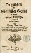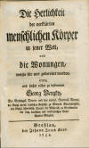 • geboren am 18. Dezember 1704 in Gommern • sein Vater war Daniel Venzky, geboren am 15. März 1662 in Güntershagen (Neumark), gestorben 1705 • seine Mutter hieß Annen Elisabeth Wellerin (gestorben 1743) und stammte aus Möckern (2. Frau von Daniel Venzky) • seine Großeltern waren George Venzky (Prediger in Güntershagen) und Agnesen Muskovien • Schreibweisen Venzki oder Ventzky sind bekannt, Vorname auch als George geschrieben • 1716 Schulbesuch in Burg • 1718 Übersiedelung nach Barby, Unterricht im Hause seines Vetters, der in Barby Rektor war • 1720 Schulbesuch in Halle • studierte seit 1722 in Halle und verwaltete im dortigen Waisenhaus 2 Jahre lang ein Lehramt • 1724 Aufenthalt in Leipzig • 1725 Informator in Friesack (Brandenburg) • 1726 Informator in Havelberg • 1728 wurde er in dem Pädagogium zu Kloster Bergen als Lehrer angestellt • 1731 heiratete er Ilsabe Dorothea von Bülau mit der er eine Tochter und drei Söhne hatte • 1731 erhielt er das Subkonrektorat und war Bibliothekar, 1738 das Konrektorat an der Domschule zu Halberstadt • 1740 Dombibliothekar zu Halberstadt • ab 1742 war er Prorektor und dann Konrektor an der Lateinschule zu Prenzlau • 1749 erwarb er sich durch eine Dissertation "De caelis, quorum S. Seriptura meminit" von der Universität Kopenhagen den Grad eines "Doktors der Gottesgelahrtheit" • führte 1751 Neuerungen im Lehrplan ein, um dadurch aus der großen Stadtschule eine Realschule zu machen • verfaßte theologische Schriften und 18 Schulschriften, davon eine in Latein, die meist in den Dresdner Anzeigen veröffentlicht wurden • 1753 starben zwei seiner Söhne • verfaßte einen Aufsatz, in dem er den Nutzen der Schiffbarmachung der Ucker für Prenzlau überzeugend darlegte • er starb am 28. Februar 1757 in Prenzlau und wurde am 2. März 1757 begraben Er war Mitglied mehrerer gelehrten Gesellschaften: • Ehrenmitglied der königl. preußischen deutschen Gesellschaft zu Königsberg • der königl. schwedischen Societät der Wissenschaften zu Greifswald • der Deutschen Gesellschaft in Leipzig (1733) • der prüfenden Gesellschaften in Halle (1739) • der Lateinischen Gesellschaft in Halle (1740) • der Philologischen Gesellschaft in Schulpforta (1741) • der Musikalischen Gesellschaft in Leipzig (1743) • der Literarischen Gesellschaft in Halberstadt (1745) • der Königlich Deutschen Gesellschaft in Greifswald (1751) Eine Auswahl seiner Werke: • "Observationes philologicae II" - 1743 • "Nachricht von den halberstädtschen Bibliotheken" - Hamburg 1743 • "Des "Adels und Offiziers vorteilhaftester Zeitvertreib, in 5 kleinen Reden angepriesen" • "Schulchronik" - 1749 • "Programm von dem Schulbunde", Prenzlau 1754 • "Die Herlichkeit der verklärten menschlichen Körper in jener Welt, und die Wonungen, welche für uns zubereitet worden", Breslau 1752 ![]() mit freundlicher Genehmigung der Universitäts- und Landesbibliothek Sachsen-Anhalt (urn:nbn:de:gbv:3:1-116920-p0003-4) • "Die Herlichkeit des Ebenbildes Gottes in seinem ganzen Umfange : vornämlich an dem Menschen", Breslau 1752 ![]() mit freundlicher Genehmigung der Universitäts- und Landesbibliothek Sachsen-Anhalt (urn:nbn:de:gbv:3:1-116914-p0005-0) Des weiteren übersetzte er Schriften (Auszug): • Clarke, Samuel (1675 - 1729): "Geistliche Reden." Aus dem Englischen übersetzt von Georg Venzky. Leipzig, Teubner ab 1732 • Benn William: "Betrachtungen von der Glückseligkeit und der Gesundheit der Seelen, wegen ihres erbaulichen Inhalts." Aus dem Englischen übersetzt von Georg Venzky. Magdeburg 1732 • Graf von Shaftesbury, Anton: "Unterredung mit sich selbst, oder Unterricht für Schriftsteller." Aus dem Englischen übersetzt von Georg Venzky. Magdeburg 1738 • Patrik, Samuel: "Unterricht, wie man die Trägheit und den Rückfall im Christentum verhüten soll." Aus dem Englischen übersetzt von Georg Venzky. Magdeburg 1743 Quellen: • "Historisch-Kritische Nachrichten von verstorbenen Gelehrten und deren Schriften" Erster Teil, J. G. W. Dunkels, Cöthen 1753, S. 528-530 • "Versuch eine Geschichte der Uckermärkischen Hauptstadt Prenzlau" zweiter Teil, J. S. Seckt, Prenzlau 1787, S. 192 • "Lexikon der vom Jahr 1750 bis 1800 verstorbenen Teutschen Schriftsteller" Bd. 14, J. G. Meusel, Leipzig 1815, S. 237-241 • "Geschichte des Gymnasiums zu Prenzlau von 1543-1893.", R. Arnoldt, Prenzlau 1893, S. 131-133 • Universitäts- und Landesbibliothek Sachsen-Anhalt: urn:nbn:de:gbv:3:1-116920-p0003-4 und urn:nbn:de:gbv:3:1-116914-p0005-0 • "Johann Christoph Gottsched - Briefwechsel - Historisch-kritische Ausgabe" Band 3: 1734-1735, Bibliografische Information Der Deutschen Nationalbibliothek, Berlin 2009, ISBN: 978-3-11-021561-8 |