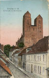 Diese 100 m lange Nebenstraße war vermutlich vor Errichtung des Mittelturms Ende des 15. Jh. die Haupteingangsstraße von Süden her, worauf die Einbuchtung der Neustadt gegenüber der Fischerstraße hinweist. Ursprünglich hieß sie Pfaffenstraße , dann ab 1584 bis etwa 1700 wegen der Mädchenschule Schulgäßichen , ab 1722 wieder Pfaffenstraße . Die erwähnte Mädchenschule wurde im 16.Jahrhundert als "Jungfernschule" bezeichnet. Am Westende der Straße (am Mittelgraben) direkt an der Wurstbrücke, befand sich noch Ende 1600 als bestehend erwähnt, die Pfaffenburg mit einer Mauerdurchfahrt. ![]() Das Haus Nr. 18a war vermutlich früher ein Torschreiberhaus, später in wechselndem Privatbesitz und ab 1884 ein Schulgebäude, darauf ab 1910 die Unterkunft der Hilfsschule. Auf Nr. 22a stand das Küsterhaus für St. Marien und auf 22 b das "Organistenhaus", das 1829 als Schulhaus für die zweite Parochialklasse der Marienkirche im alten Küstergarten erbaut wurde. 1854 gingen dann diese beiden Klassen ein und wurden mit den anderen Kirchenschulen im alten Prinzenpalais als " Stadtschule I " zusammen gefaßt. Die erste Pflasterung erhielt sie 1584. Alle 11 Grundstücke, die 1880, 1892 und 1938 aus den Hausnummern 14-17, 18a,b, 19-21, 22a und b bestanden, brannten 1945 ab. Quellen: • Adreßbücher der Stadt Prenzlau in mehreren Jahrgängen • Stadtpläne der Stadt Prenzlau und Umgegend aus mehreren Jahren • "Die Prenzlauer Straßen und ihre Geschichte", Alfred Hinrichs, maschinenschriftliche Aufzeichnungen, 1954 |