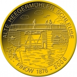 1 Barni; 2006; ausgegeben: 2006/03; Herausgeber: Raumausstatter Kahler; MB-1Barni-2006-11; Vs.: 1 BARNI - RAUMAUSSTATTER KAHLER; Rs.: ALTE HEEGERMÜHLER SCHLEUSE FINOW 1876 - 2006; Nordig-Gold; Dm=23,5mm |