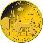 1 Barni; 2006; ausgegeben: 2006/10; Herausgeber: Raumausstatter Kahler; MB-1Barni-2006-33; Vs.: 1 BARNI - RAUMAUSSTATTER KAHLER; Rs.: 115 Jahre Kirche Finow 1891-2006; Nordig-Gold; Dm=23,5mm |