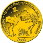 1 Barni; 2009; ausgegeben: 2009/03; Herausgeber: Sempf´s Landgasthaus; MB-1Barni-2009-07; Vs.: 1 BARNI - Sempf´s Landgasthaus; Rs.: Naturpark Barnim, Nonnenfließtal, Kraniche; Stahlkern vermessingt; Dm=23,5mm |
