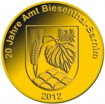 1 Barni; 2012; ausgegeben: 2012/06; Herausgeber: BARNI Marketing & Service Ltd.; MB-1Barni-2012-20; Vs.: 1 BARNI - BARNI M. & S. Ltd.; Rs.: 20 Jahre Amt Biesenthal-Barnim; Stahlkern vermessingt; Dm=23,5mm |