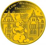 1 Barni; 2012; ausgegeben: 2012/12; Herausgeber: Buchhandlung Mahler; MB-1Barni-2012-30; Vs.: 1 BARNI - Buchhandlung Mahler; Rs.: Lese-Weihnacht in Eberswalde 2012; Stahlkern vermessingt; Dm=23,5mm |