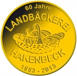 1 Barni; 2013; ausgegeben: 2013/02; Herausgeber: Landbäckerei Hakenbeck; MB-1Barni-2013-05; Vs.: 1 BARNI - Landbäckerei Hakenbeck; Rs.: 60 Jahre Landbäckerei Hakenbeck; Stahlkern vermessingt; Dm=23,5mm |
