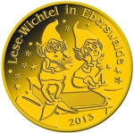1 Barni; 2013; ausgegeben: 2013/12; Herausgeber: Buchhandlung Mahler; MB-1Barni-2013-27; Vs.: 1 BARNI - Buchhandlung Mahler; Rs.: Lese-Wichtel in Eberswalde 2013; Stahlkern vermessingt; Dm=23,5mm |