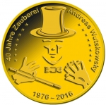 1 Barni; 2016; ausgegeben: 2016/03; Herausgeber: Reisebüro Schorfheidetouren; MB-1Barni-2016-06; Vs.: 1 BARNI - Reisebüro Schorfheidetouren; Rs.: 40 Jahre Zauberei A. Wutskowsky 1976-2016; Stahlkern vermessingt; Dm=23,5mm |