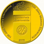 3 Barni; 2005; ausgegeben: 2005/01; Herausgeber: Rotary Club; MB-3Barni-2005-01; Vs.: 3 Barni - Rotary Club; Rs.: 100 Jahre Museum Eberswalde (Eberswalder Goldschatz); Messing Goldfarbig; Dm=30,22mm; Auflage: 1.000 Stück; Spendenbarni |