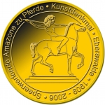3 Barni; 2006; ausgegeben: 2006/02; Herausgeber: Musahl exklusiv; MB-3Barni-2006-06; Vs.: 3 Barni - Musahl exklusiv; Rs.: Speerwerfende Amazone zu Pferde, Kunstdenkmal Eberswalde 1909-2006; Messing Goldfarbig; Dm=30,22mm |