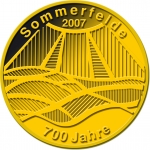 3 Barni; 2007; ausgegeben: 2007/07; Herausgeber: Lehmanns Getränke; MB-3Barni-2007-01; Vs.: 3 Barni - Lehmanns Getränke; Rs.: 700 Jahre Sommerfelde; Messing Goldfarbig; Dm=30,22mm |