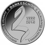 3 Barni; 2010; ausgegeben: 2010/06; Herausgeber: Juwelier & Goldschmiede Lanowski; MB-3Barni-2010-01; Vs.: 3 Barni - Juwelier & Goldschmiede Lanowski; Rs.: Juwelier & Goldschmiede Lanowski 1995-2010, Dankeschön; Messing vernickelt (silberfarbig); Dm=30,22mm |