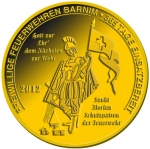 3 Barni; 2012; ausgegeben: 2012/12; Herausgeber: Lehmanns Getränke; MB-3Barni-2012-02; Vs.: 3 Barni - Lehmanns Getränke; Rs.: Freiwillige Feuerwehr Barnim 365 Tage einsatzbereit – Schutzpatron Skt. Florian; Messing Goldfarbig; Dm=30,22mm |