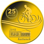 3 Barni; 2015; ausgegeben: 2015/04; Herausgeber: Radhaus Kattanek; MB-3Barni-2015-01; Vs.: 3 Barni - Radhaus Kattanek; Rs.: 25 Jahre Radhaus Kattanek; Messing Goldfarbig; Dm=30,22mm |
