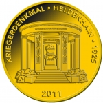 5 Barni; 2011; ausgegeben: 2011/05; Herausgeber: Verein für Heimatkunde zu Eberswalde e.V.; MB-5Barni-2011-01; Vs.: 5 Barni - Verein für Heimatkunde zu Eberswalde e.V.; Rs.: Spendenbarni 2011: Kriegerdenkmal Heldenhain 1925; Messing, Goldfarbig; Dm=30,22mm; Spendenbarni |
