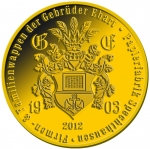 5 Barni; 2012; ausgegeben: 2012/03; Herausgeber: Sempf´s Landgasthaus; MB-5Barni-2012-01; Vs.: 5 Barni - Sempf´s Landgasthaus; Rs.: Papierfabrik Spechthausen – Firmen- & Familienwappen der Gebrüder Ebart; Messing, Goldfarbig; Dm=30,22mm |