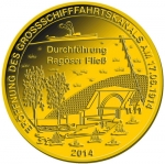 5 Barni; 2014; ausgegeben: 2014/06; Herausgeber: BARNI Marketing & Service Ltd.; MB-5Barni-2014-01; Vs.: 5 Barni - Barni M. & S. Ltd.; Rs.: Eröffnung des Großschifffahrtskanals am 17.6.1914 / Durchführung ragöser Fließ; Messing, Goldfarbig; Dm=30,22mm; Spendenbarni |