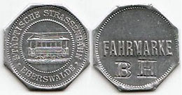 o.W.; o.J.; Menzel 7620.1; Vs.: STÄDTISCHE STRASSENBAHN * EBERSWALDE* um Straßenbahnwagen; Rs.: FAHRMARKE; Aluminium; Dm= 22,1mm achteckig |