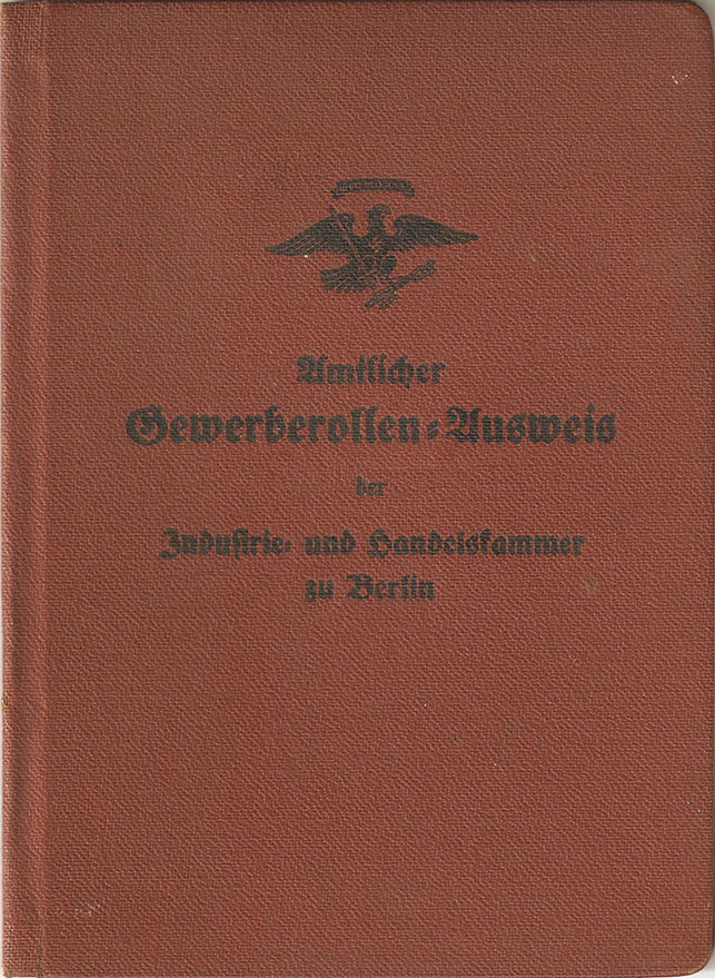 Gewerberollen-ausweis der Indistrie- und Handelskammer zu Berlin ausgestellt 1935 in Klein-Ziethen Krs. Angermünde |